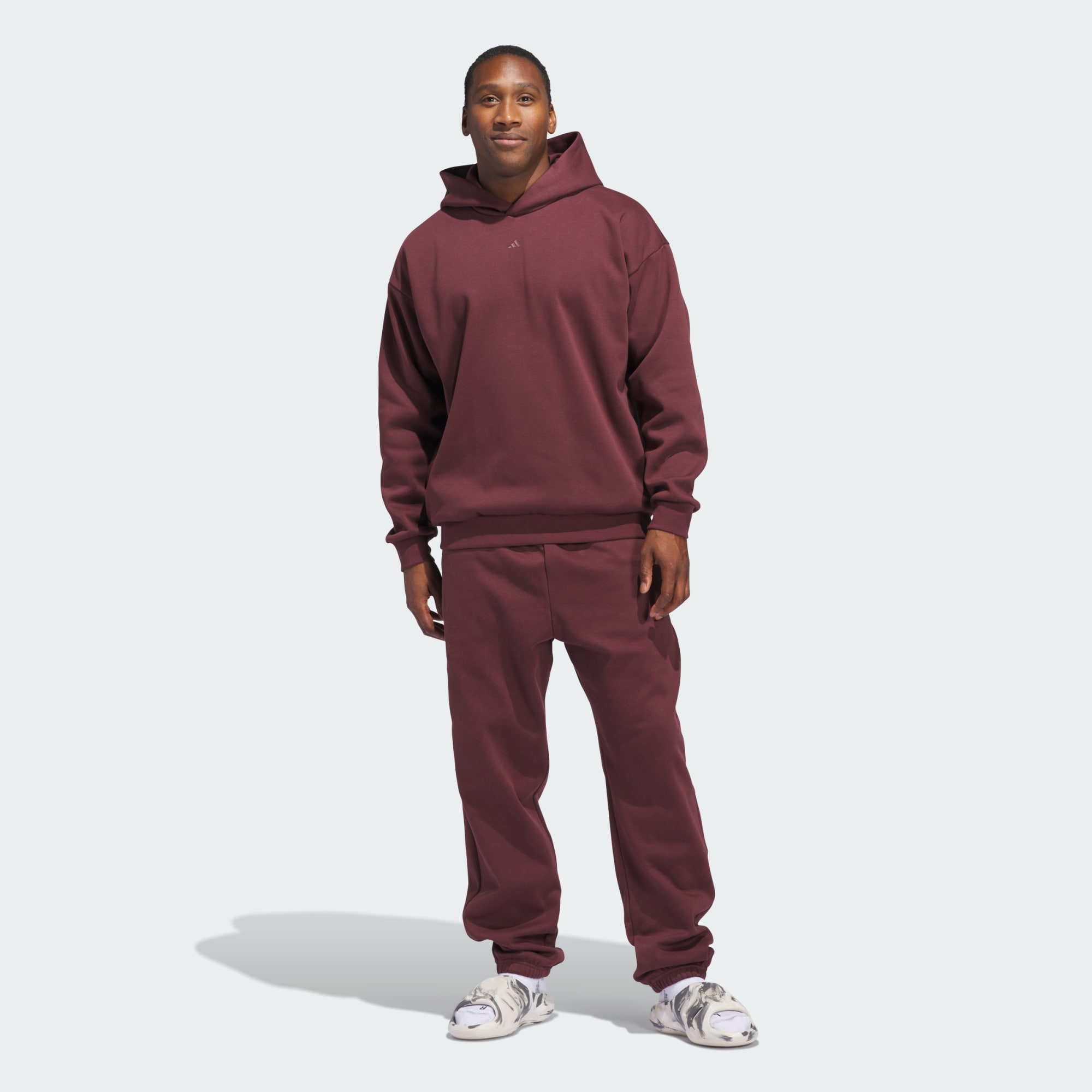 Play with passion in the adidas Basketball Fleece Hoody. This soft cotton and polyester knit pullover helps you bring your A-game whether you're on the court or cheering from the stands. The loose fit offers room through the shoulders for plenty of movement while ribbed cuffs keep you cosy. This sweatshirt was made using UNITEFIT — an all-gender fit system that was created with a spectrum of sizes, genders and forms in mind. By choosing recycled, we are able to reuse materials that have already been created, which helps to reduce waste. Renewable materials choices will help us to remove our reliance on finite resources. Our products made with a blend of recycled and renewable materials feature at least 70% total of these materials.