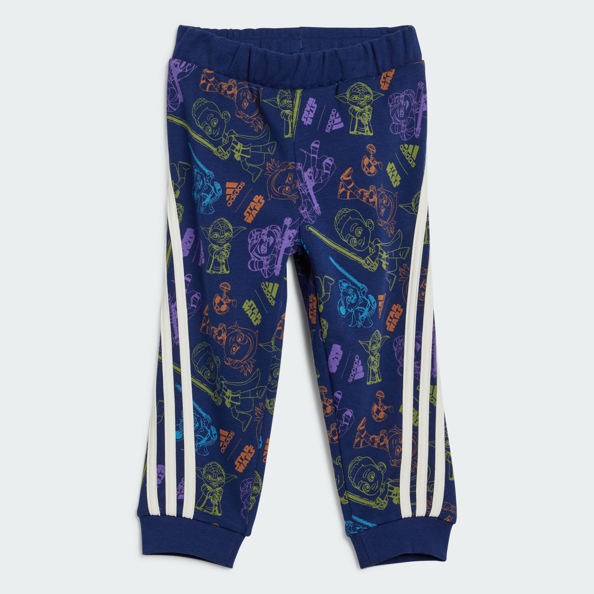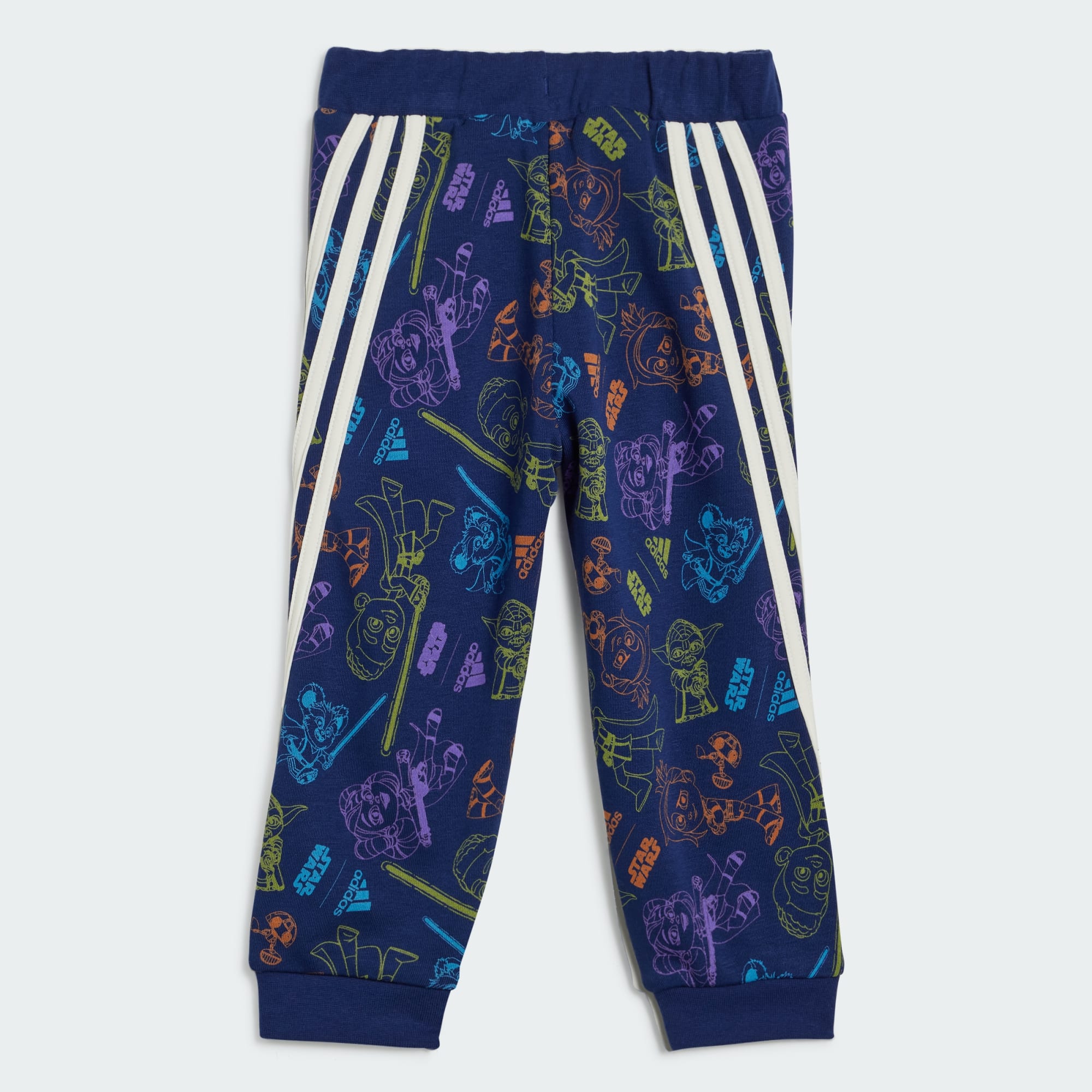 The Force is strong in this infants' adidas jogger set, making it the perfect match for headstrong toddlers. It's made from ultra soft fabric and finished with comfortable ribbed details so little ones can roam and play freely. The striking Star Wars print is sure to inspire some epic adventures.