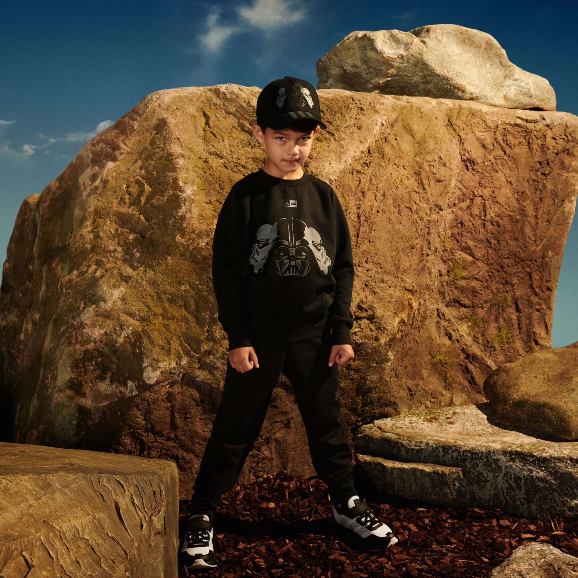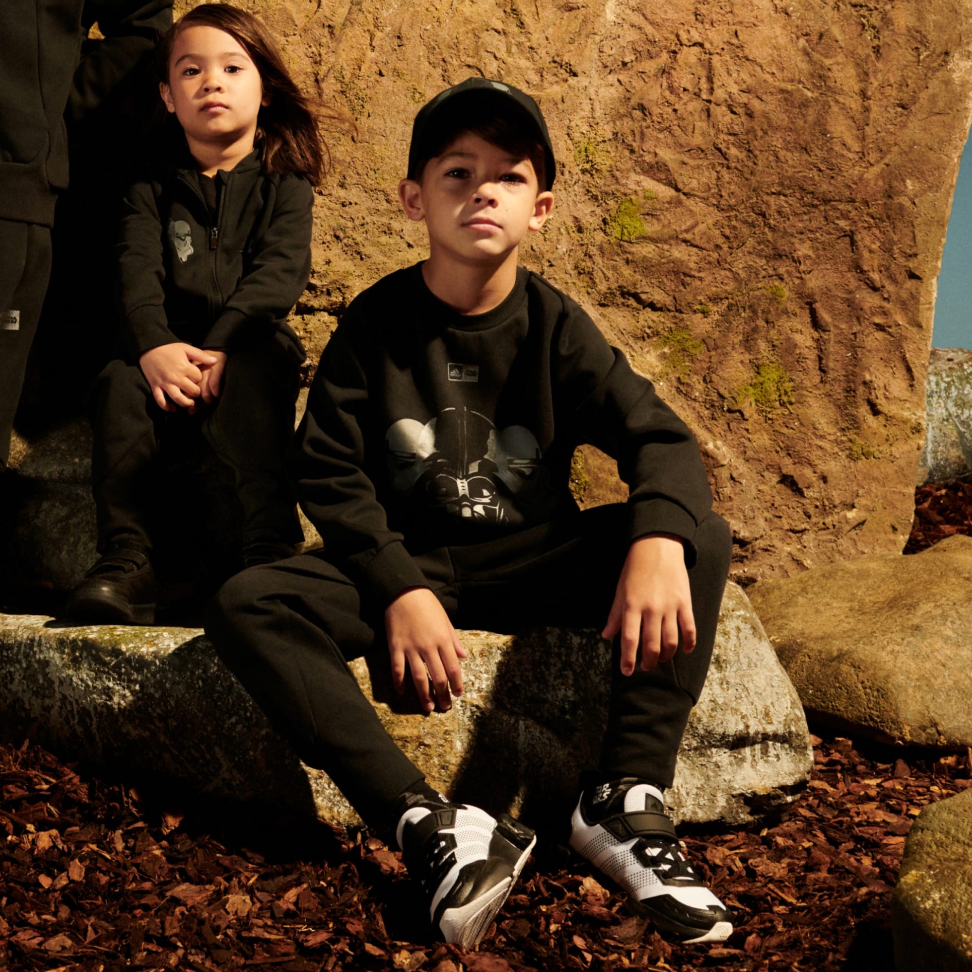 There's no limit where kids can go, from the backyard to distant galaxies, in this kids' adidas jogger set. Soft fabric keeps them cosy without weighing them down while ribbed details add extra comfort. Kids feel the Force, and the positive vibes, in this Star Wars-inspired design. By choosing recycled, we are able to reuse materials that have already been created, which helps to reduce waste. Renewable materials choices will help us to remove our reliance on finite resources. Our products made with a blend of recycled and renewable materials feature at least 70% total of these materials.