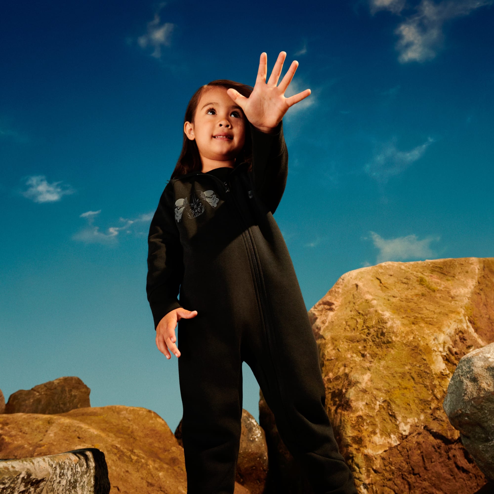 On a mission to distant moons or just headed for the playground, this infants' adidas onesie is ideal for little explorers. With metallic accents inspired by spaceships, this Star Wars-inspired design invokes the spirit of adventure while keeping toddlers wrapped in comfort. By choosing recycled, we are able to reuse materials that have already been created, which helps to reduce waste. Renewable materials choices will help us to remove our reliance on finite resources. Our products made with a blend of recycled and renewable materials feature at least 70% total of these materials.