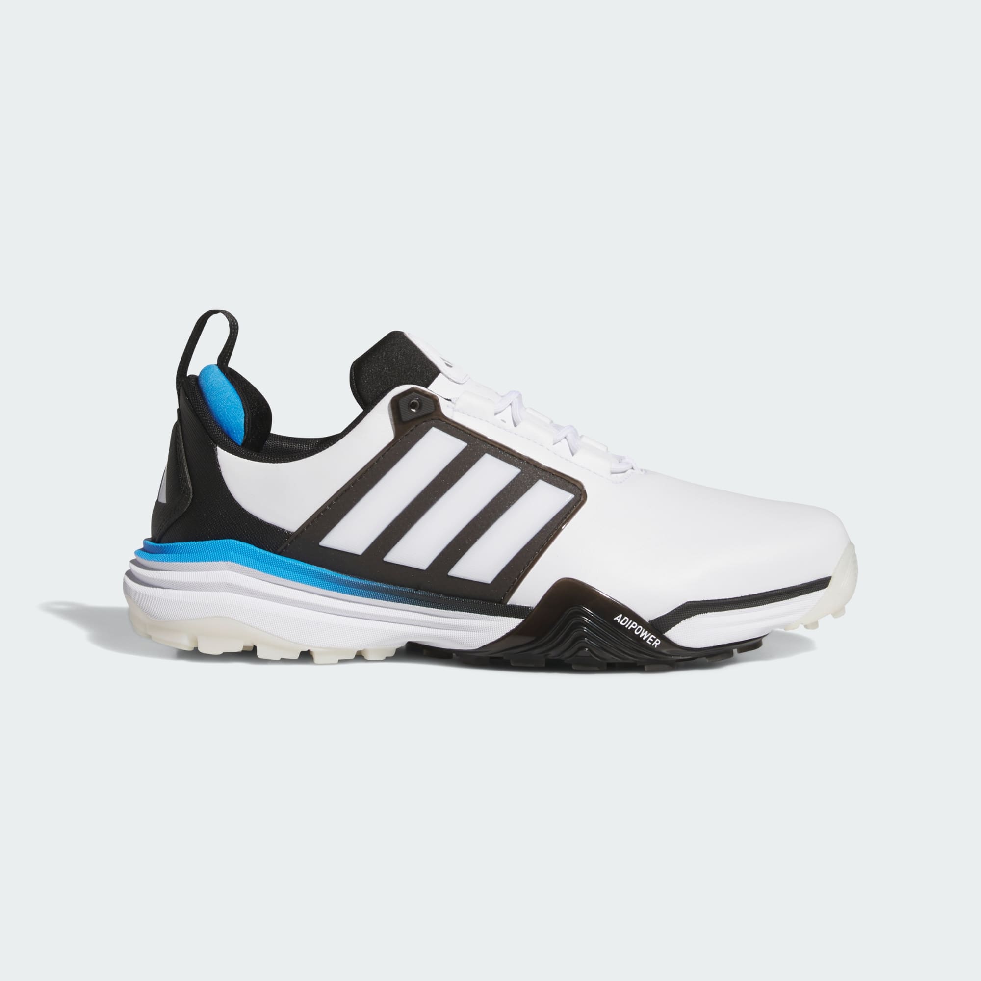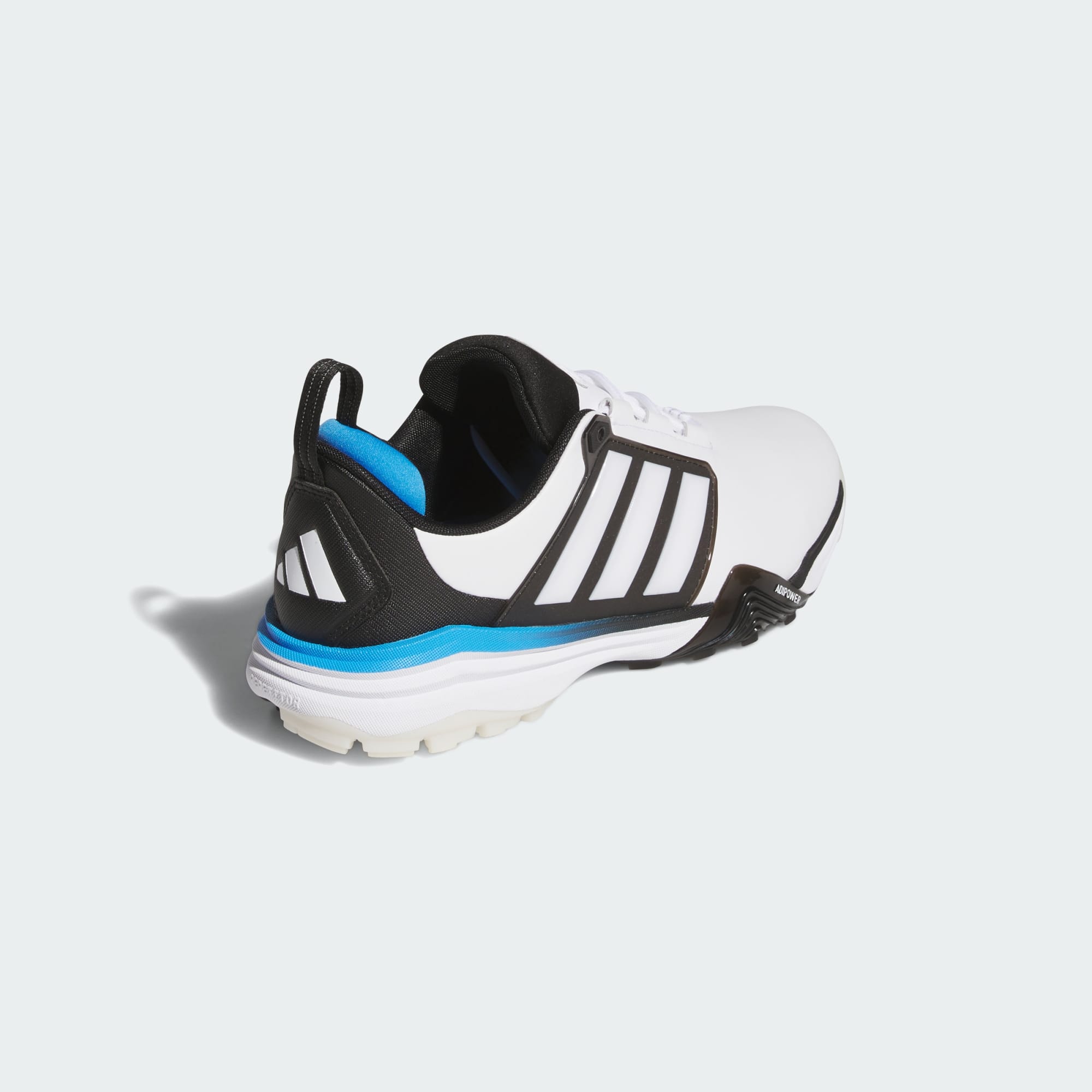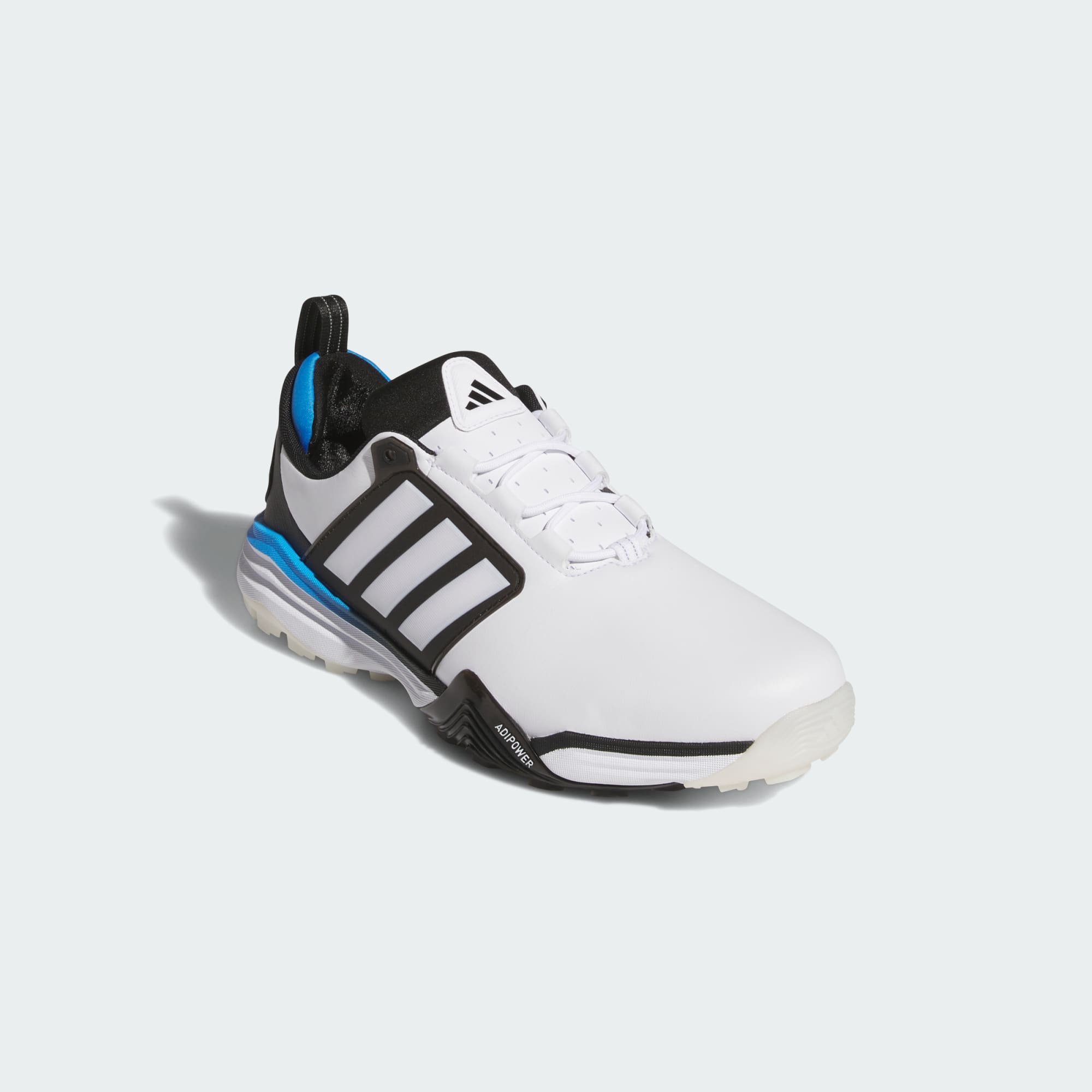 Power up your play with the Adipower 26 Wide Spikeless golf shoes from adidas, built to deliver a precise, controlled foundation that supports your progress round after round. The leather and synthetic upper delivers durability and flexibility, while the textile lining maintains a steady feel from the first tee to the final putt. Traxion technology gives confident grip and balance through every swing. A Repetitor midsole adds lightweight cushioning for a smooth, responsive stride across the course. Finished with bold 3-Stripes and Performance details, these adidas shoes bring technical power with a sharp edge to help you golf in comfort and style without compromising on performance.