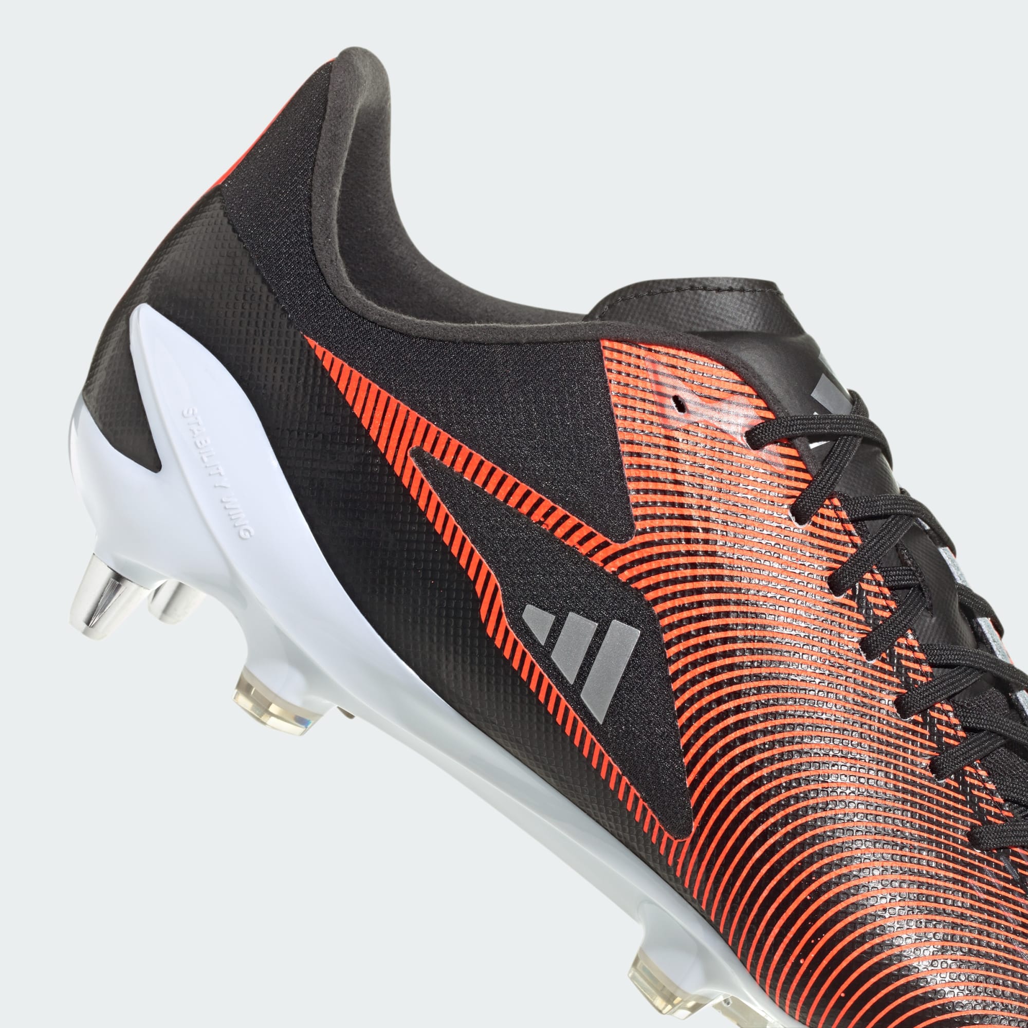 Rapid in every direction. As the game gets faster, players need to respond in a heartbeat. Built for soft ground, these adidas RS15 Pro rugby boots have a seamless Fusionskin leather forefoot for a first-class feel and custom fit. Rigid stability wings, ripstop fabric in the rearfoot and foam Sensepods in the heel ensure you stay strapped in for sprints. On top, asymmetrical lacing and 3D-printed elements help produce accurate kicks. Underneath, a Speedframe outsole adds biting traction. Made with a series of recycled materials, this upper features at least 50% recycled content. This product represents just one of our solutions to help end plastic waste.