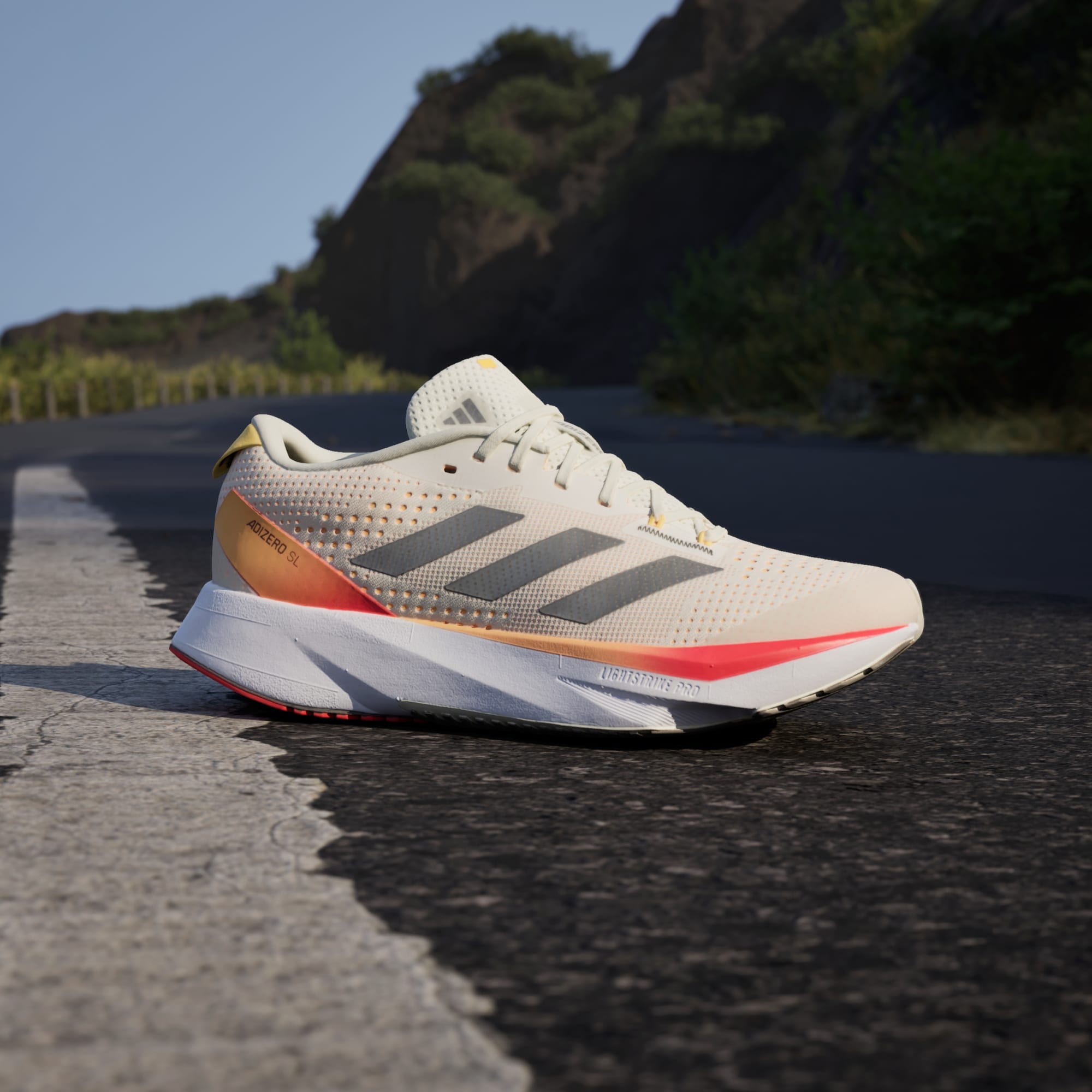 When it comes to achieving your goals, every second counts. From training to race day, powerful performances call for high-tech gear that's optimised for speed. Introducing the latest range of lightweight running staples that help you to push beyond your limits without distraction. The Adizero SL Running Shoes hand-pick the best from our world record-breaking Adizero franchise. The lightweight LIGHTSTRIKE EVA midsole delivers resilience to the midsole construction, so you can focus on the next stride, while the upper is made of a soft, engineered mesh that's zoned in key areas. A padded heel and tongue provides optimal comfort alongside the Adizero heel-blinker. The premium outsole is crafted to provide traction.