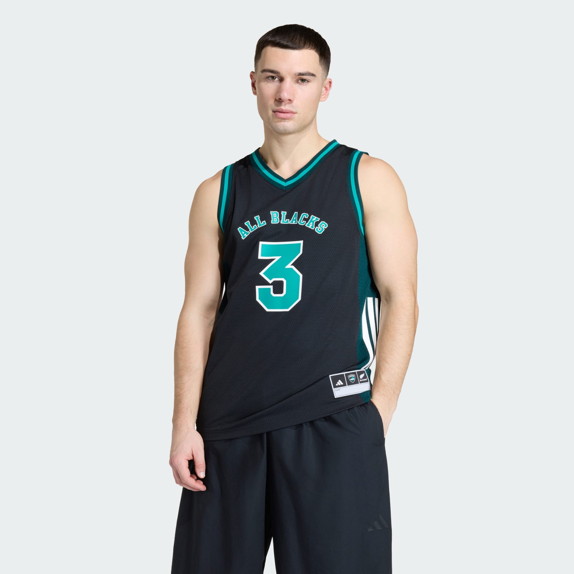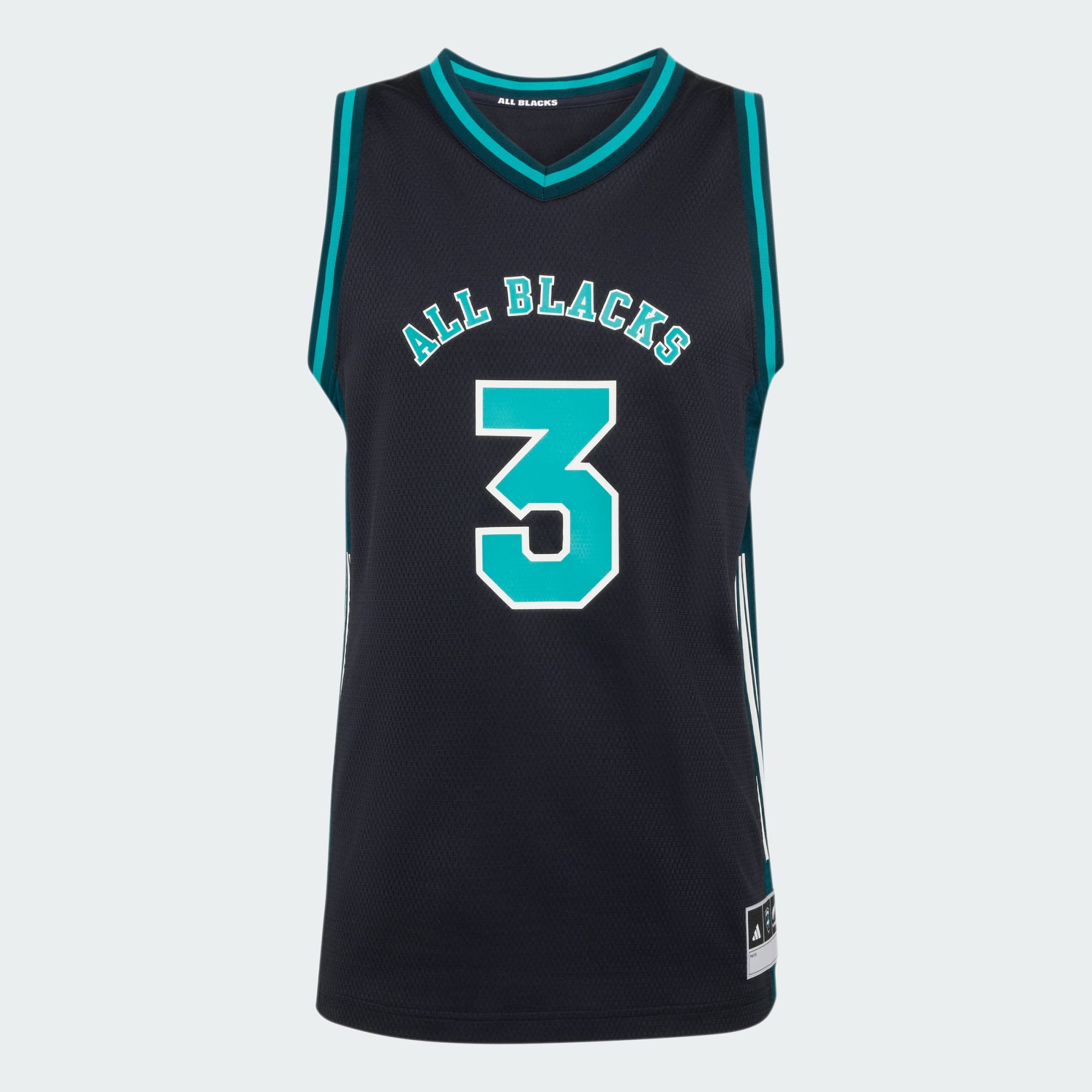 Jersey inspired by All Blacks heritage and basketball silhouettes for standout style.