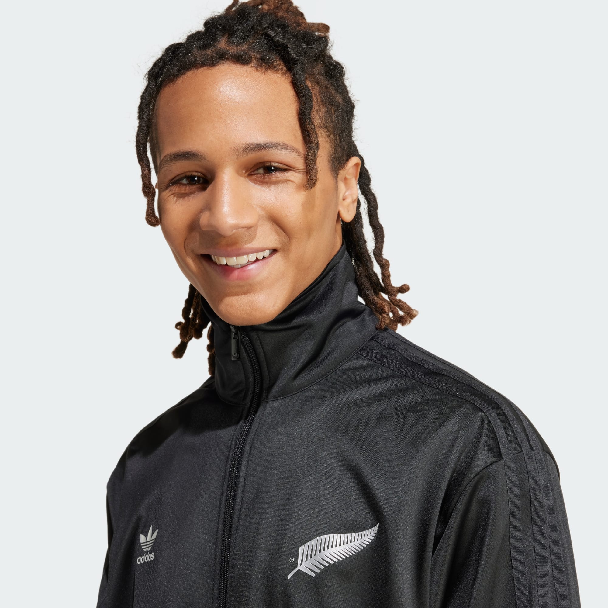 An All Blacks Firebird track top made with recycled materials.