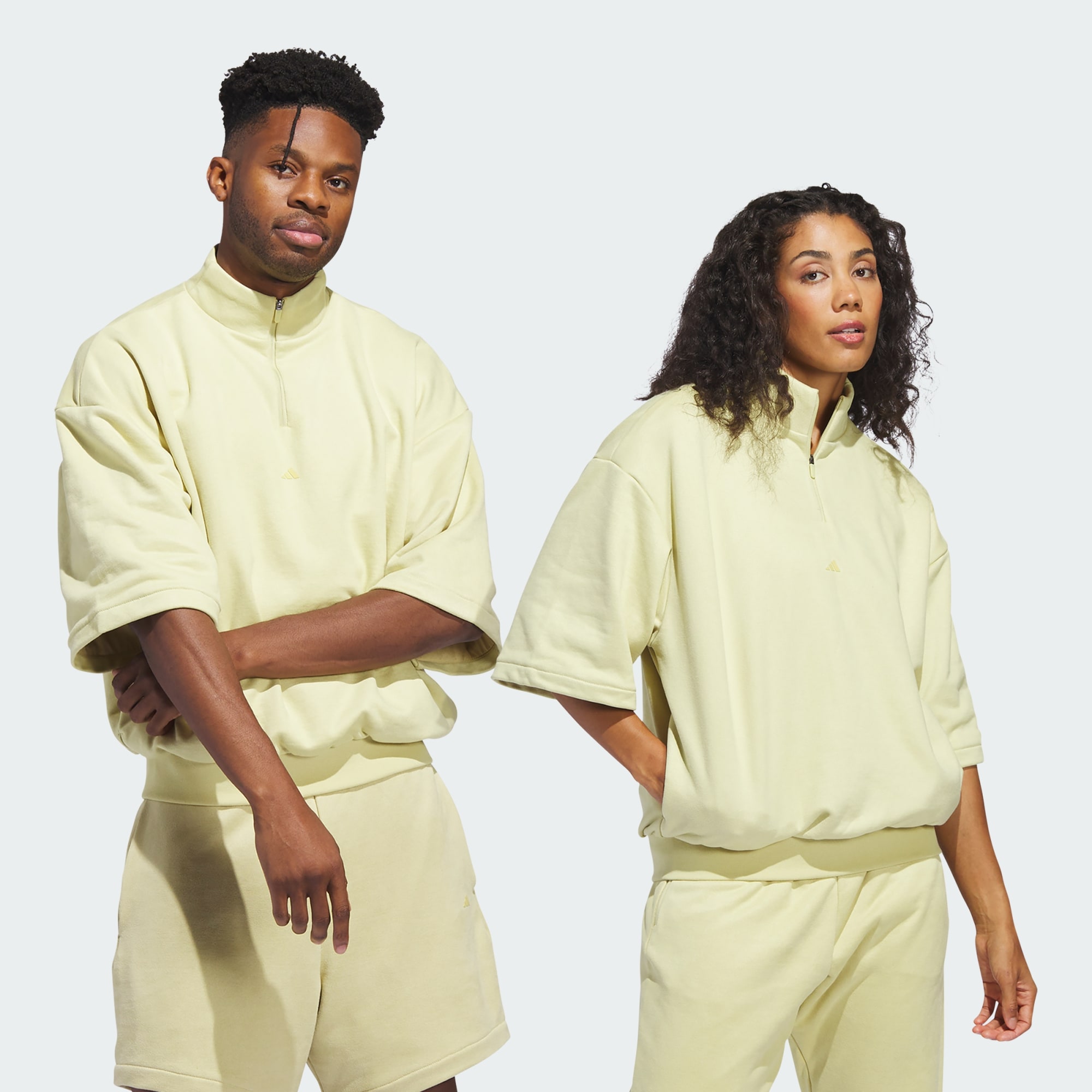 The next chapter of adidas Basketball is an exploration in form, function and colour. A curated collection, built to fit the needs of the modern athlete. This basketball half zip is made of premium French terry fabric with a sueded feel and features side seam zip pockets, three-quarter sleeves and a ribbed hem.