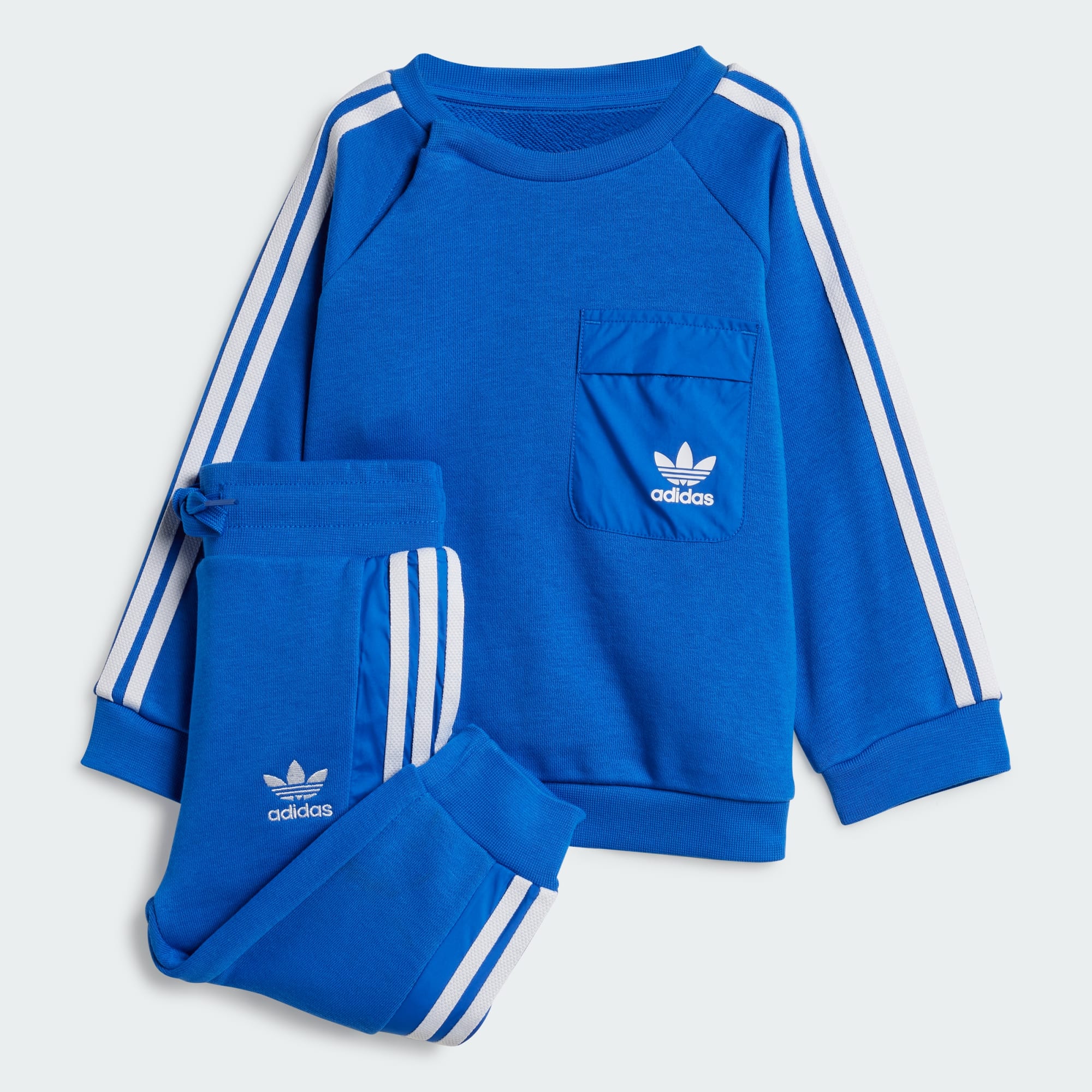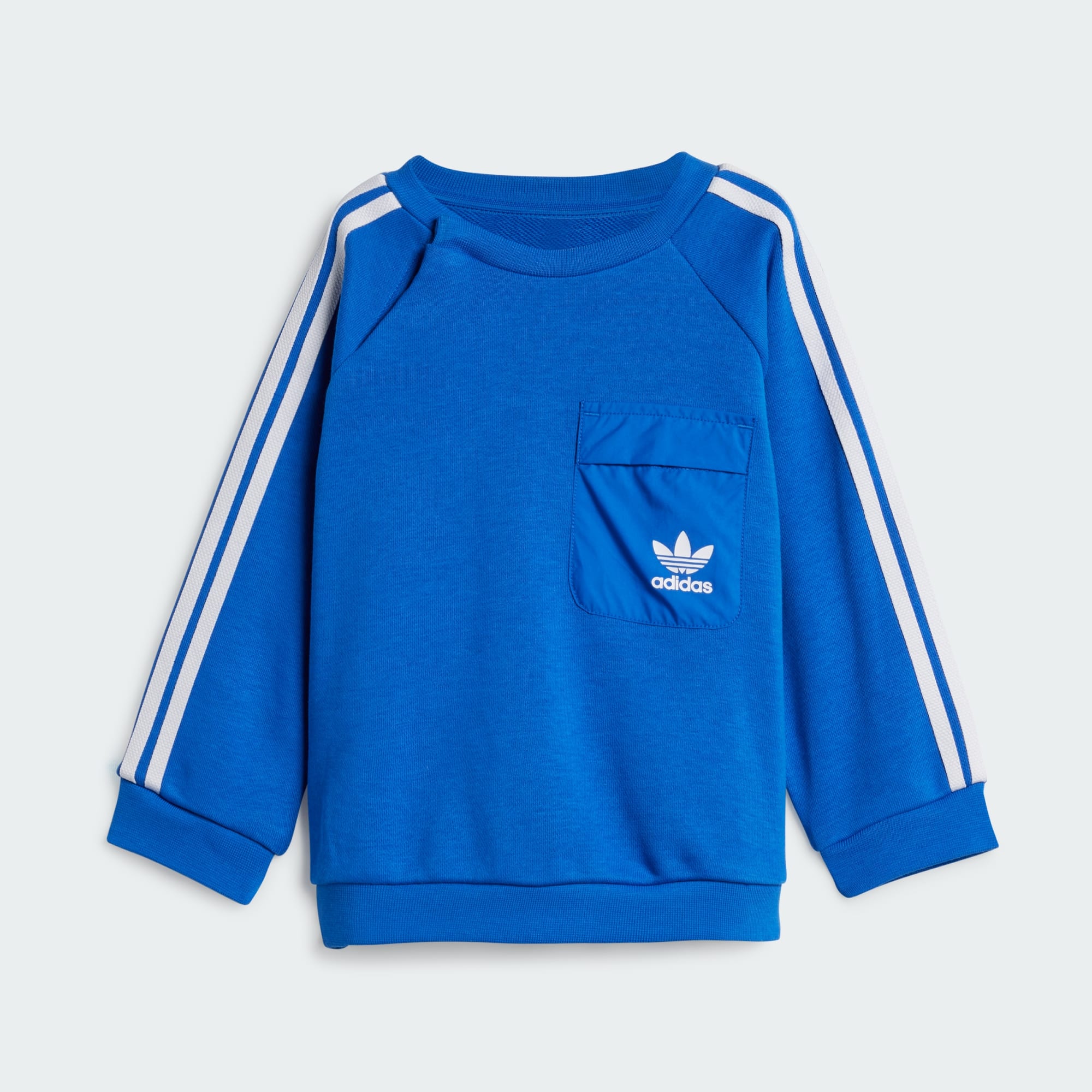 This infants' crew set lays the foundation to let their personality shine. Trefoil logos and 3-Stripes on the sweatshirt and pants root your little one in classic sport style. Soft French terry keeps them comfortable as they start to explore the world around them.