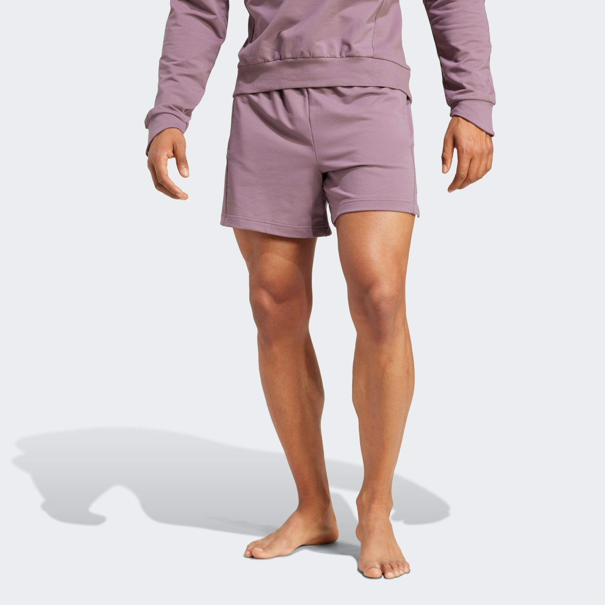 French terry yoga shorts made in part with recycled materials.