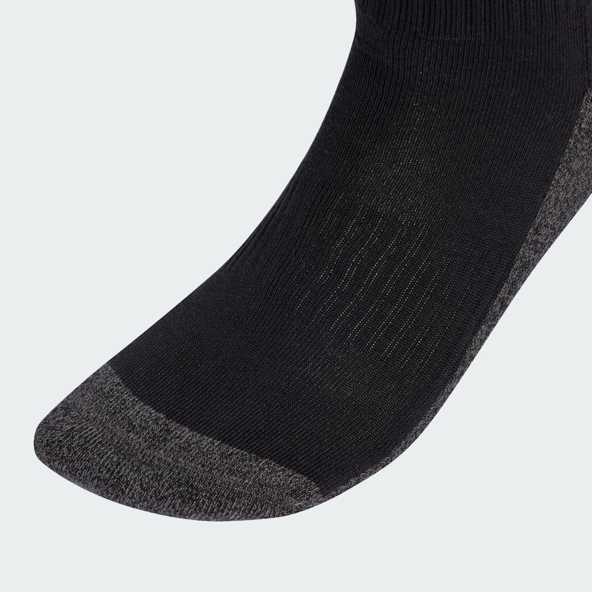 Two pairs of cushioned adidas crew socks.