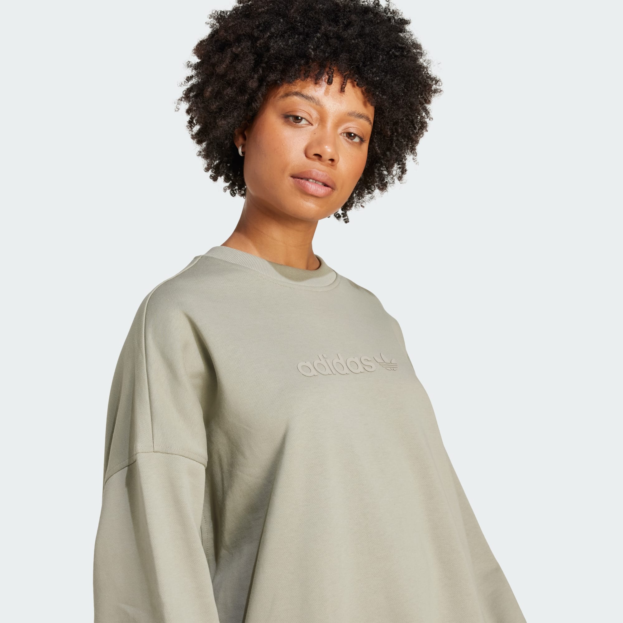 A loose-fit adidas sweatshirt with a linear adidas logo on the front.