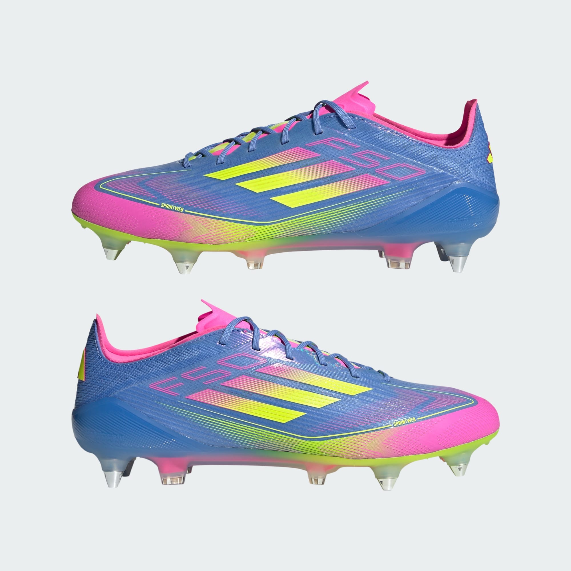 Push your pace to the limit in lightweight adidas F50 footwear engineered for speed. These Elite football boots have a thin Fibertouch upper with a Compression Fit Tunnel Tongue for lockdown and a Sprintweb 3D texture to help keep the ball close when you're flying. Designed for wet grass pitches, the springy Sprintframe 360 outsole delivers serious acceleration. This product features at least 20% recycled materials. By reusing materials that have already been created, we help to reduce waste and our reliance on finite resources and reduce the footprint of the products we make.