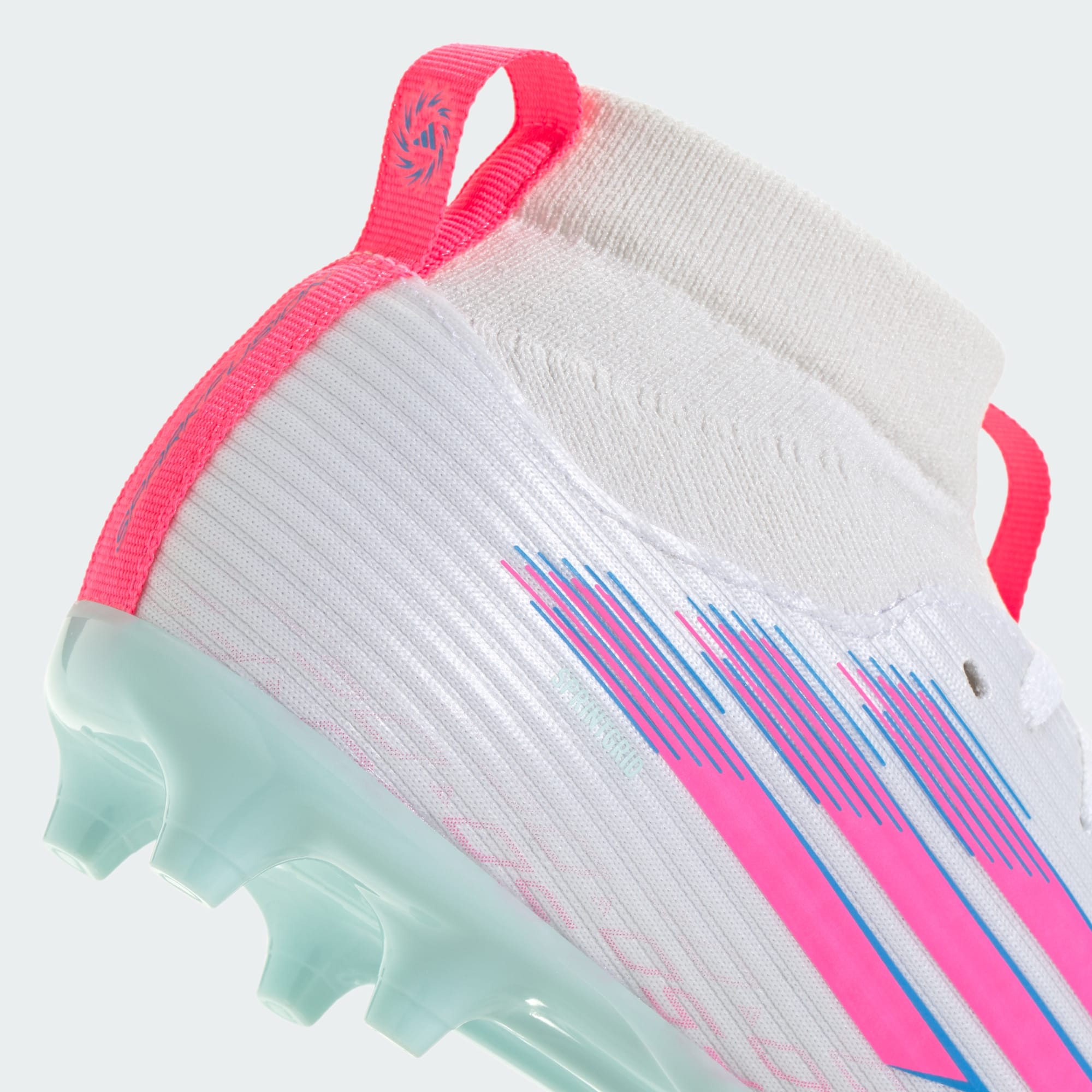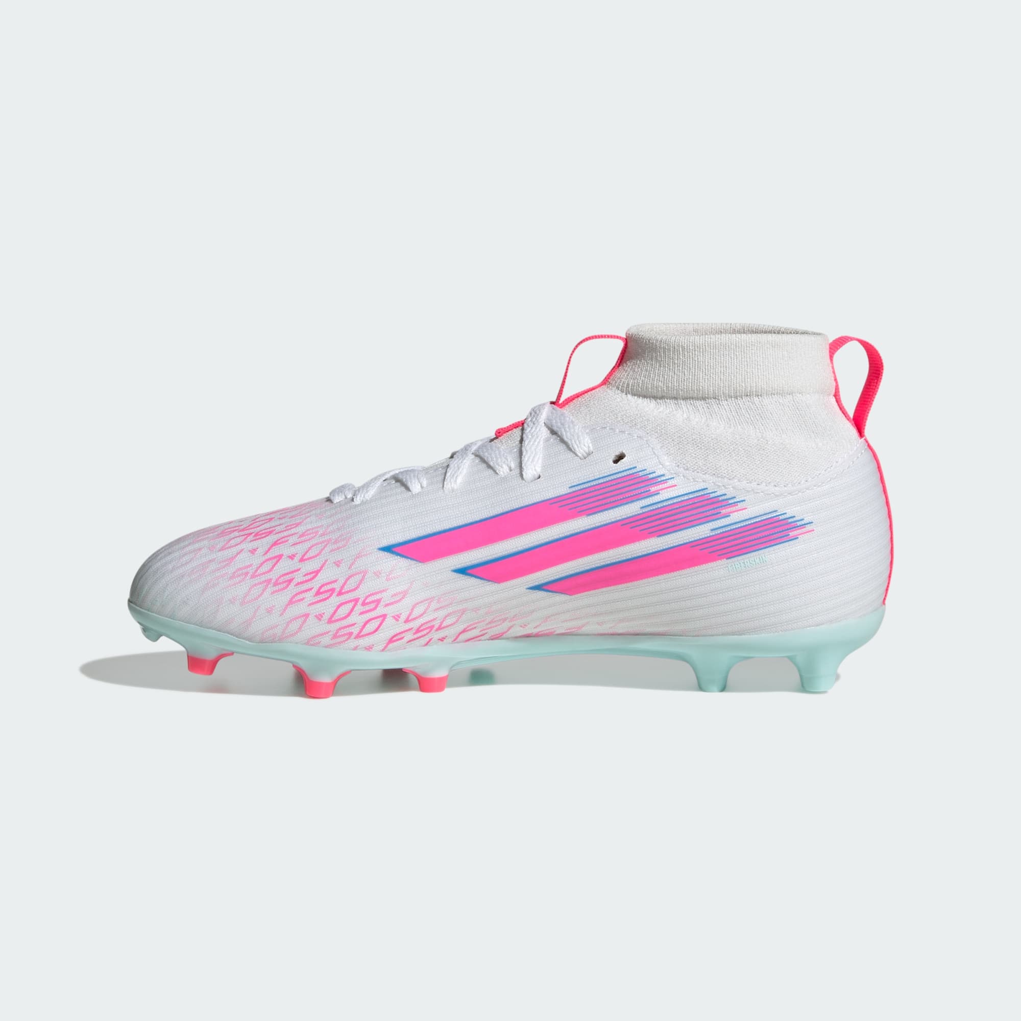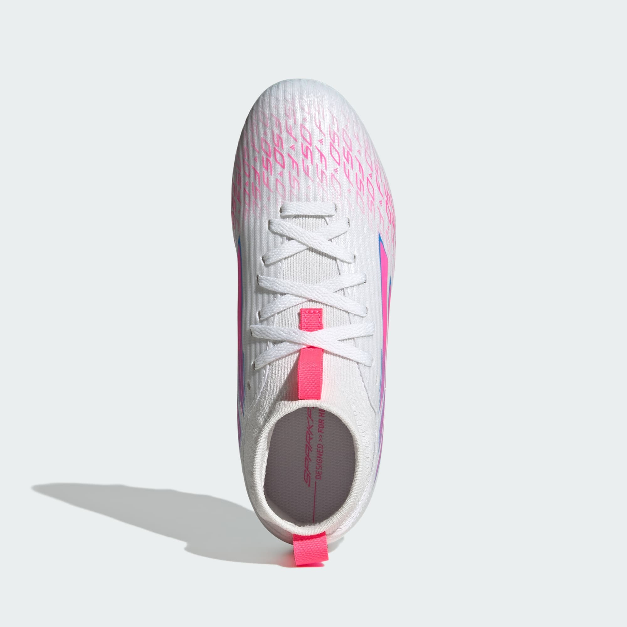 Designed for her. Light up the pitch in supportive F50 Sparkfusion boots created specifically for female athletes. These juniors' adidas League boots have a soft Fiberskin upper for comfort, a specially shaped last for the perfect fit, and a Sprintplate Fusion outsole that supports women's biomechanics. The result? Footwear that will help you fulfill your football potential on firm ground and artificial grass.