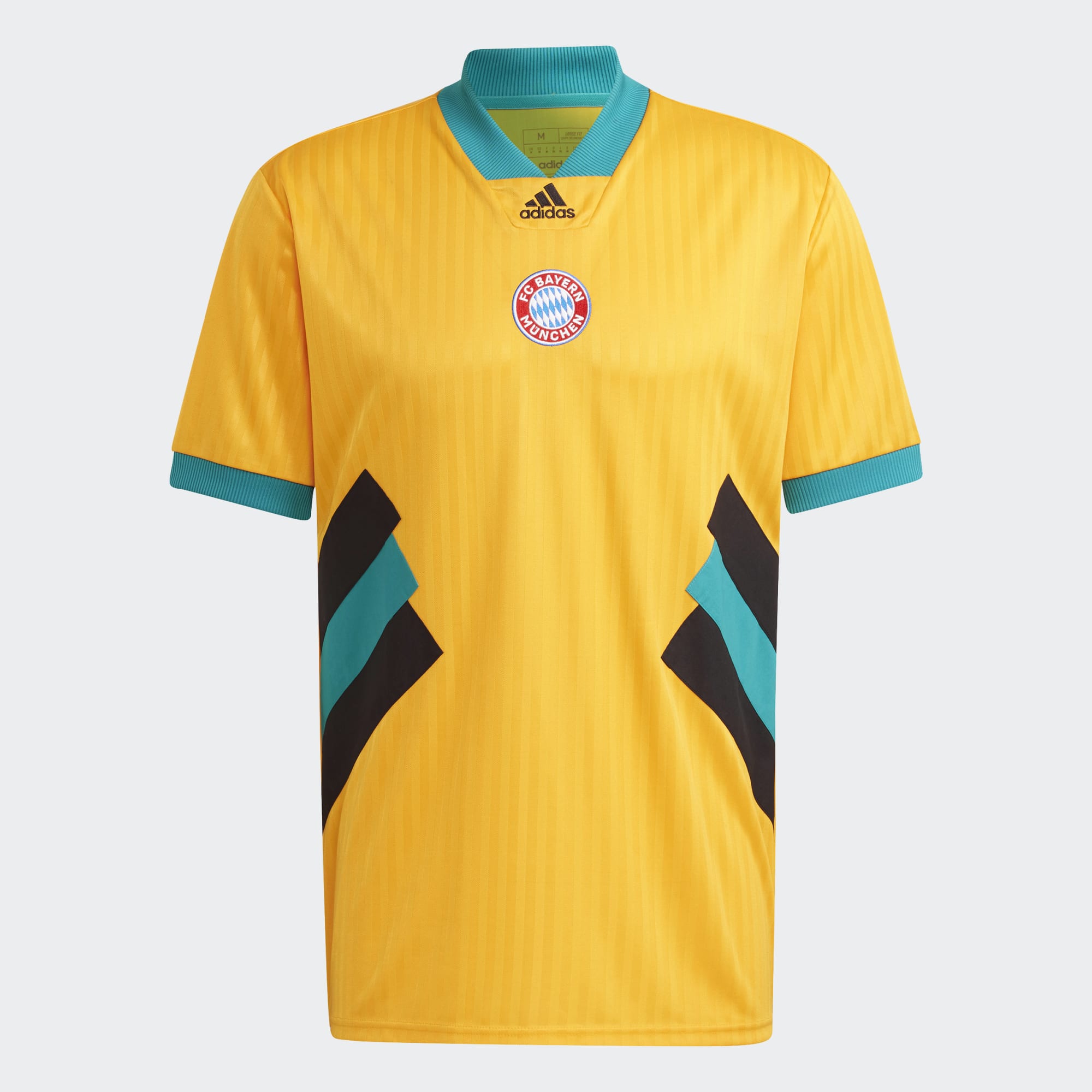 A blast from their past. This FC Bayern football jersey borrows its bold colours from the away shirts the club's players pulled on during the mid '90s. Those large diagonal 3-Stripes on either side and the central adidas Badge of Sport and team crest scream adidas Equipment style. The loose fit ensures it feels of its time too.