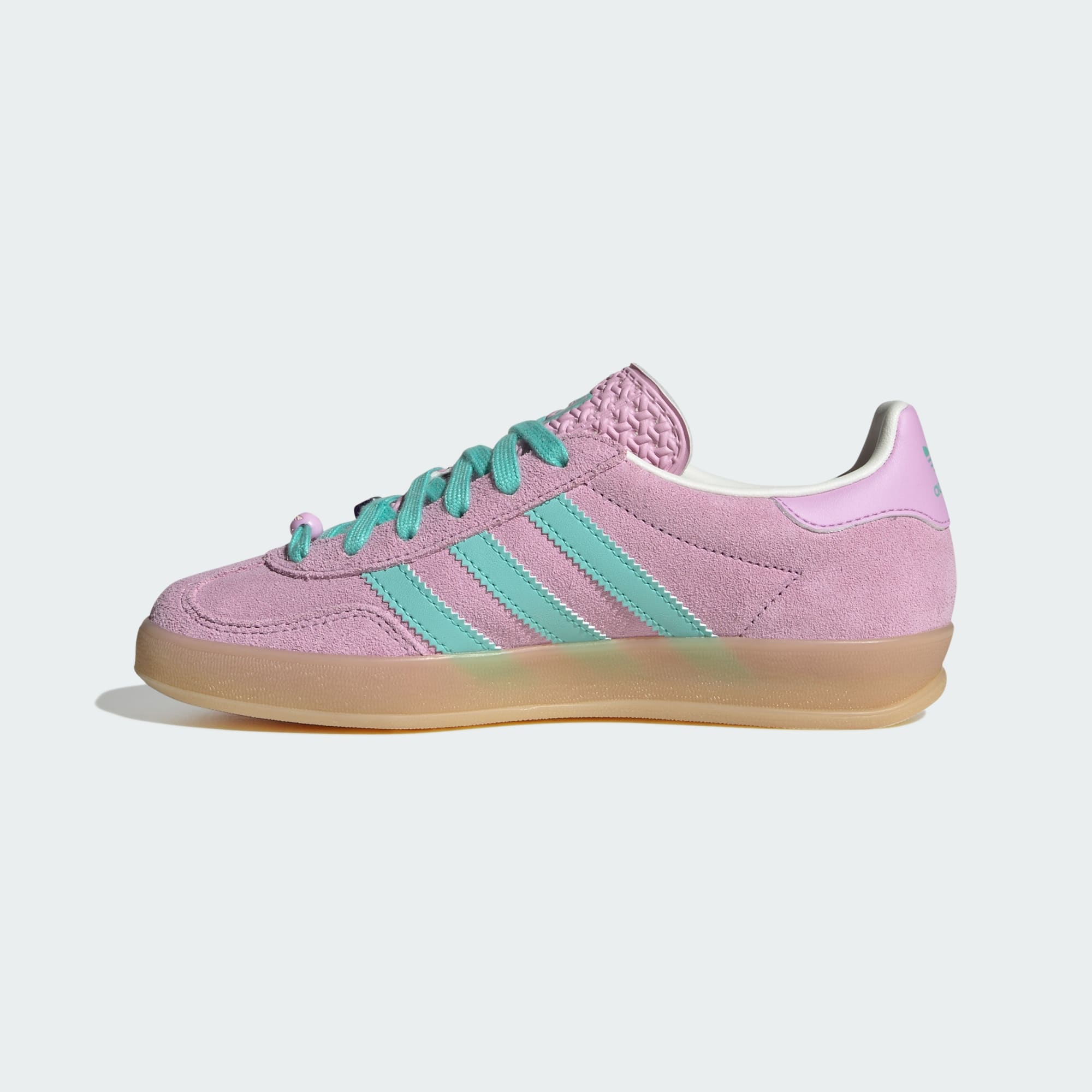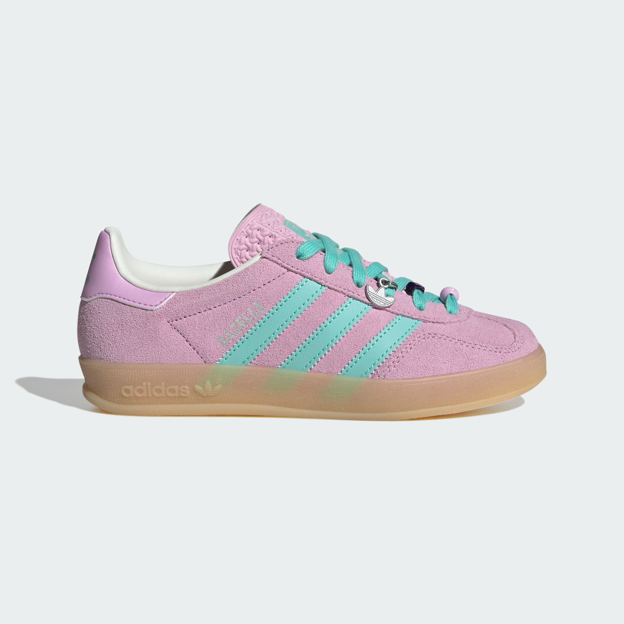 The Gazelle Indoor Shoes are a nod to the rich heritage of adidas, reimagined for today's junior trendsetters. Whether they're heading to school or playing with friends, these shoes combine style with functionality. These shoes feature a distinctive translucent gum sole that wraps around the entire shoe, setting them apart from the classic Gazelle design. The rubber outsole offers reliable traction on street surfaces. The iconic Trefoil on the tongue and the Gazelle branding in foil on the lateral side add a touch of classic adidas flair. With a suede upper, these shoes offer added comfort for everyday adventures. Introduce your little ones to the spirit of adidas Originals with these shoes and let them step out in confidence and style.