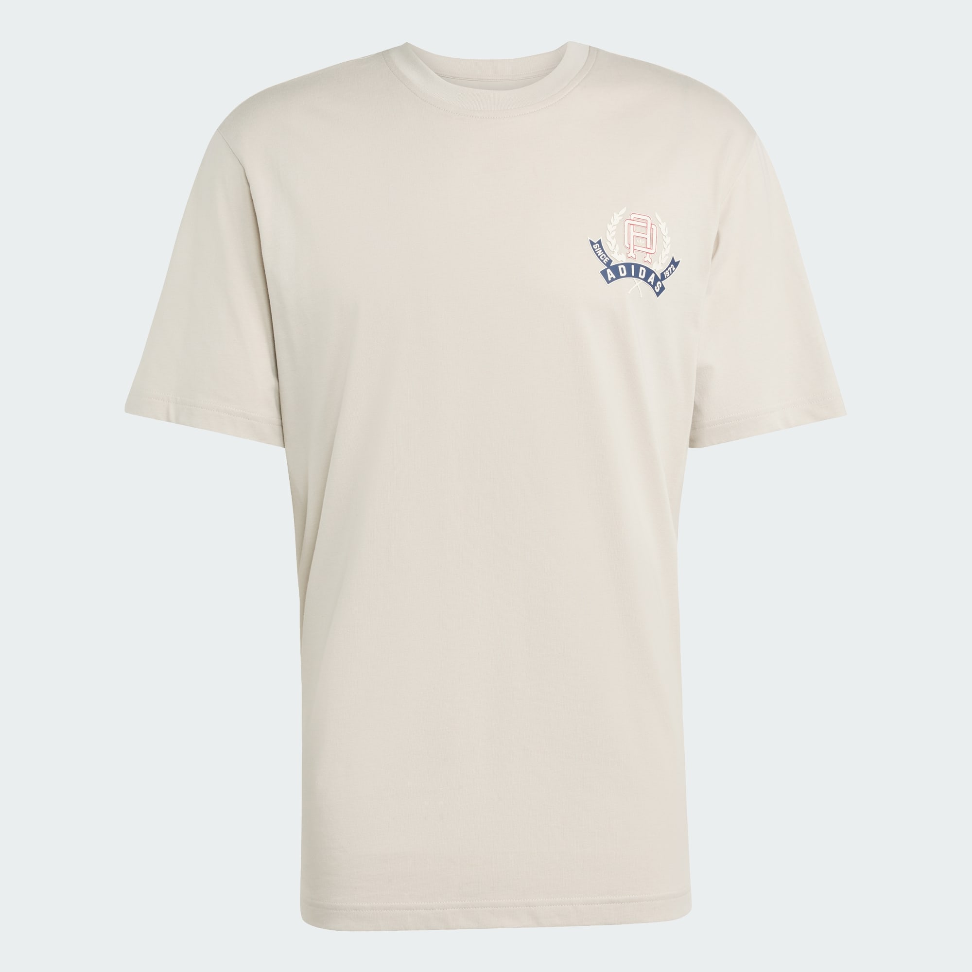 A tee with collegiate-style adidas graphics.