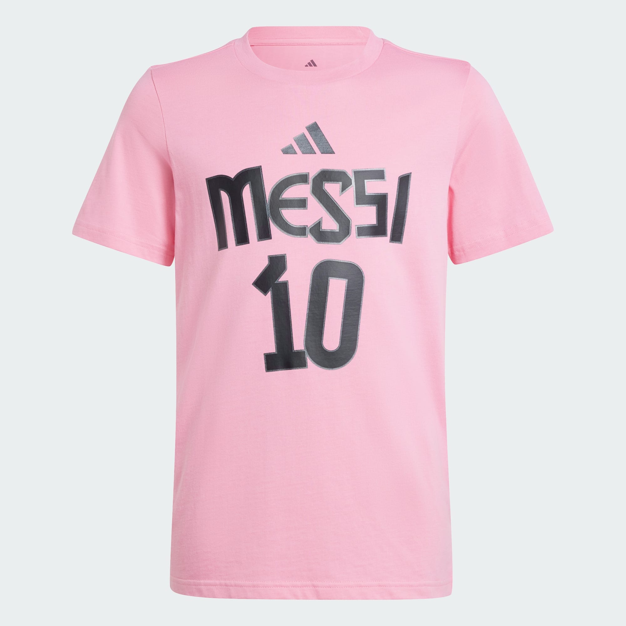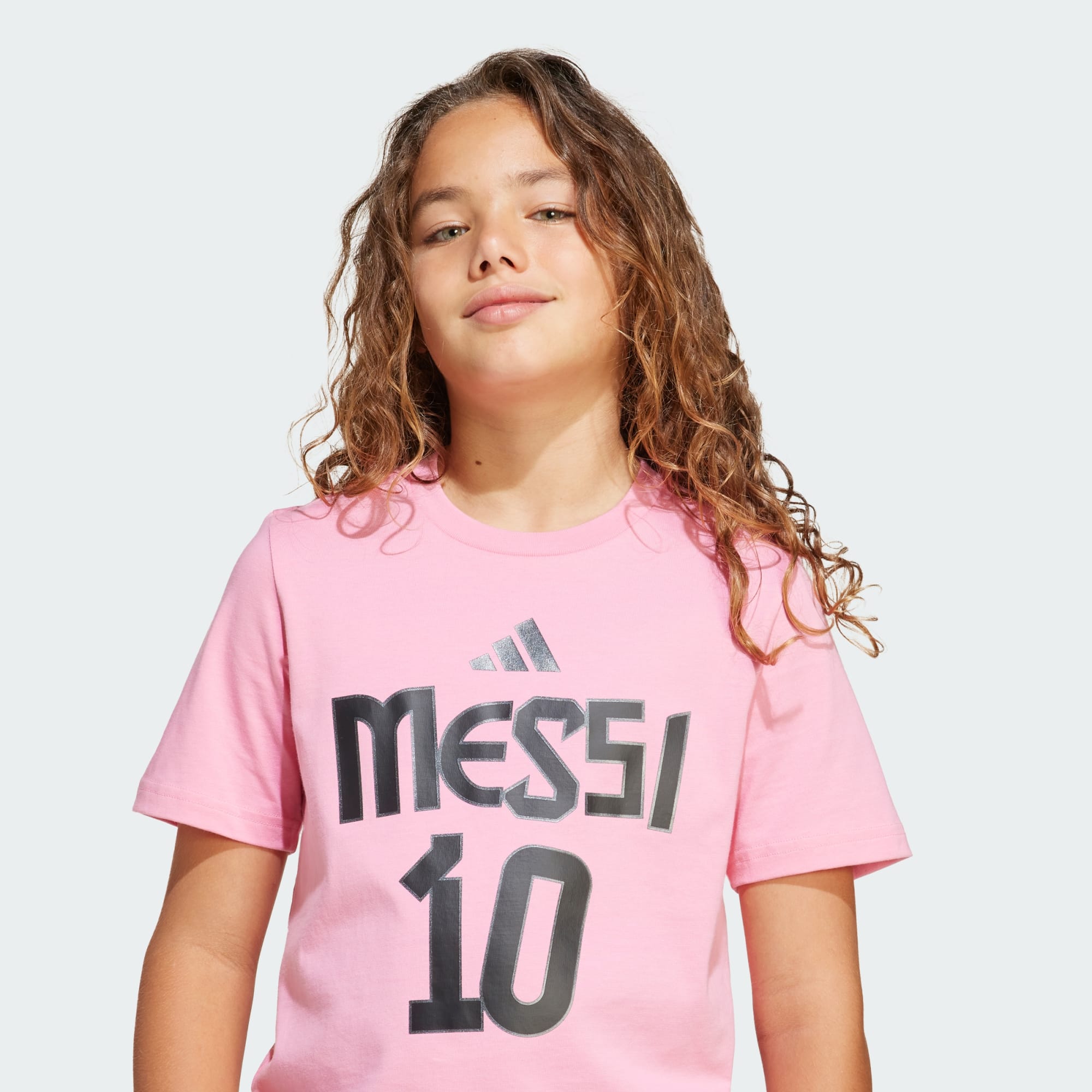 Watch them show their pride in the legendary Lionel Messi every time they pull on this kids' adidas tee. Crafted from soft cotton, it will keep them comfortable whether they're kicking a ball in the backyard or cheering on football's GOAT from the sidelines. A bold graphic on the front highlights Messi's iconic name and number.