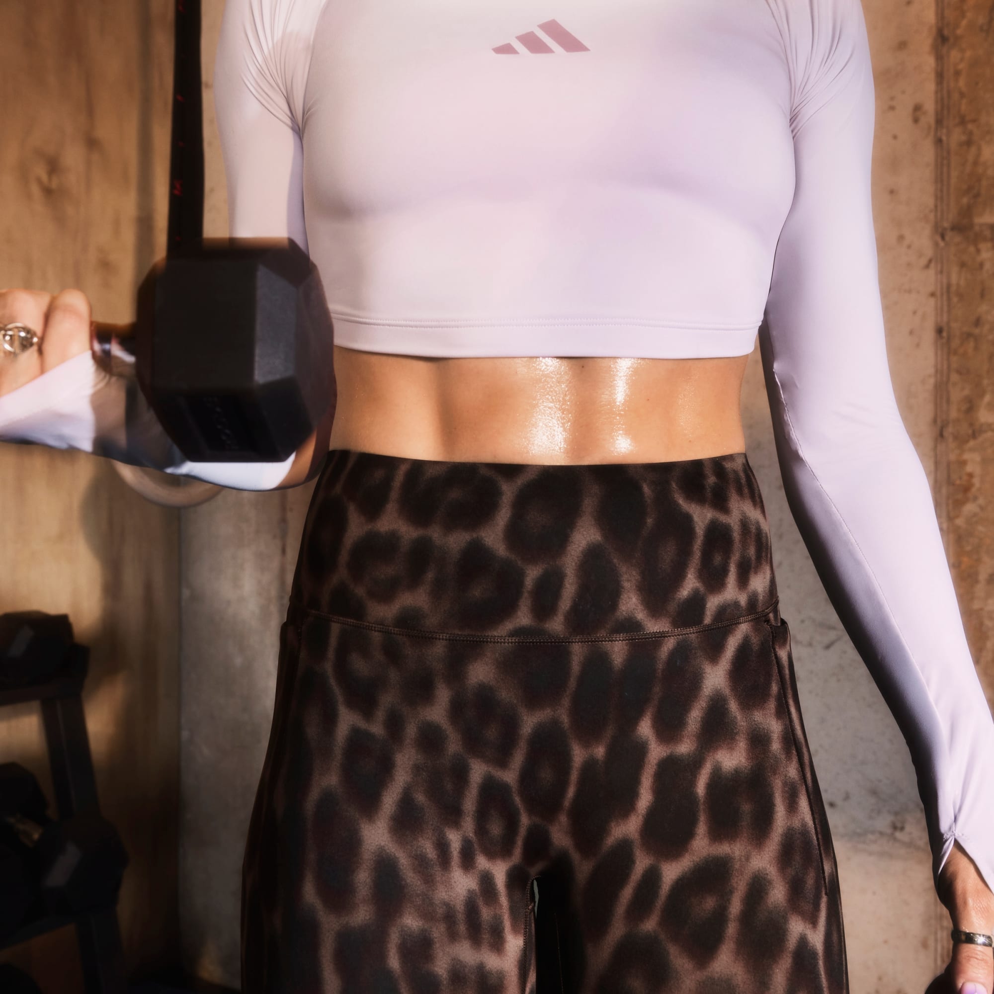 Introducing the Optimé Leopard 7/8 Leggings. With a balance between comfort and sleek performance support, these leggings are your go-to for training. The high-rise design with bonded waistband not only holds you in but also adds to the core support. The Adimove fabric offers a sleek next-to skin feel and lasting shape with Lycra® Sport technology. Cool. Dry. Ready. Climacool wicks and disperses sweat for a cool, dry and distraction-free performance. With squat-proof fabric with four-way stretch, you can move freely without worries. The signature thigh pocket lets you stash your essentials with ease, while the Performance logo completes the look. Add these adidas leggings to your wardrobe and keep making a statement even while training. Designed for hybrid training and versatile performance.