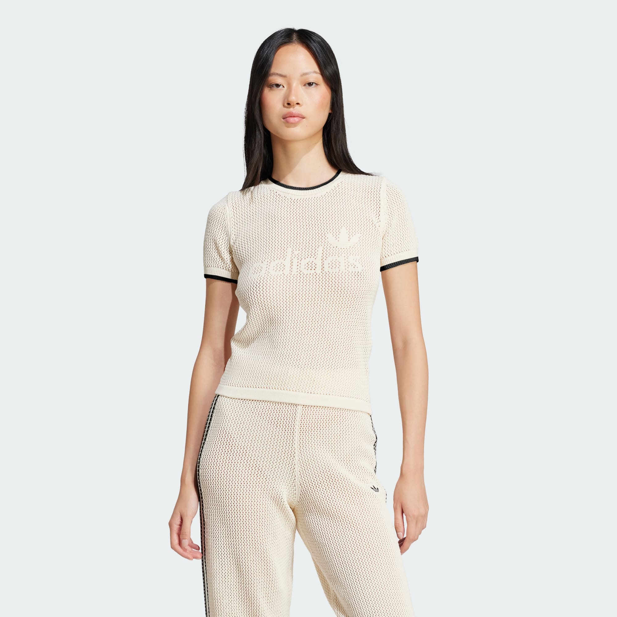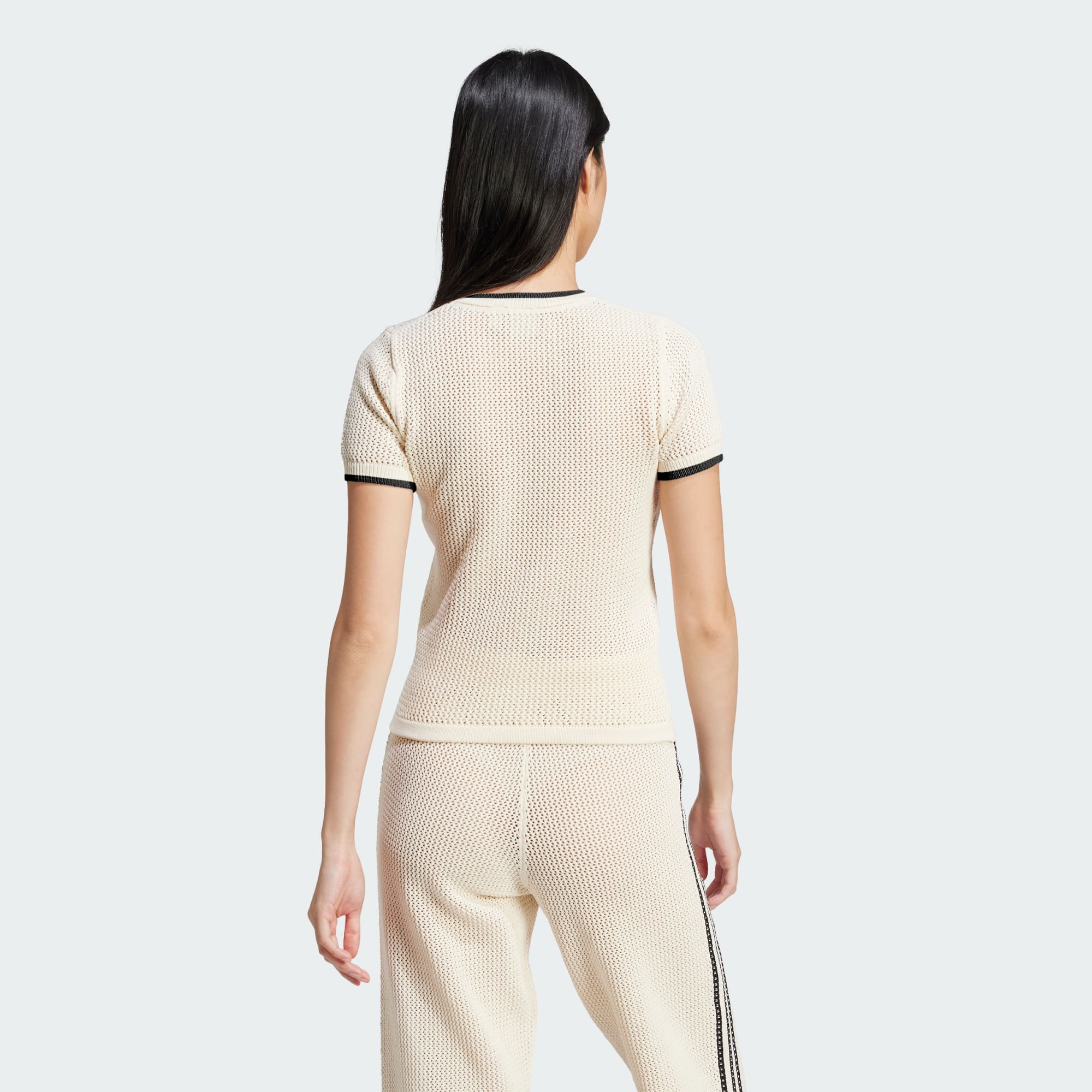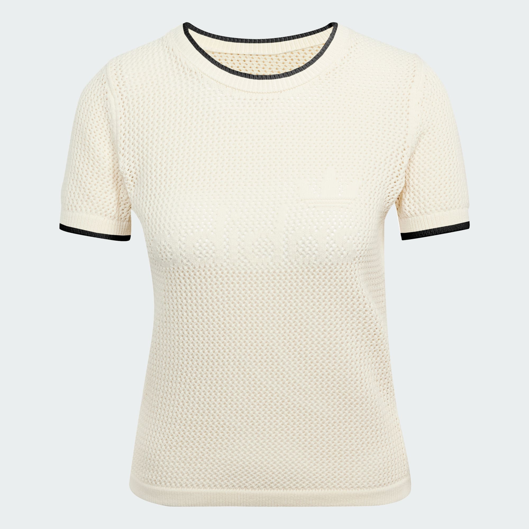 A premium take on a casual staple, this adidas tee is made from soft, fabric with an allover crocheted construction knit in different sizes. The slim fit hugs the body for a sleek look that pairs perfectly with everything from sporty track pants to your favourite distressed denim. Ribbed cuffs at the short sleeves add a subtle style twist. An adidas and Trefoil logo knit in at the chest adds the finishing touch to this elevated essential.