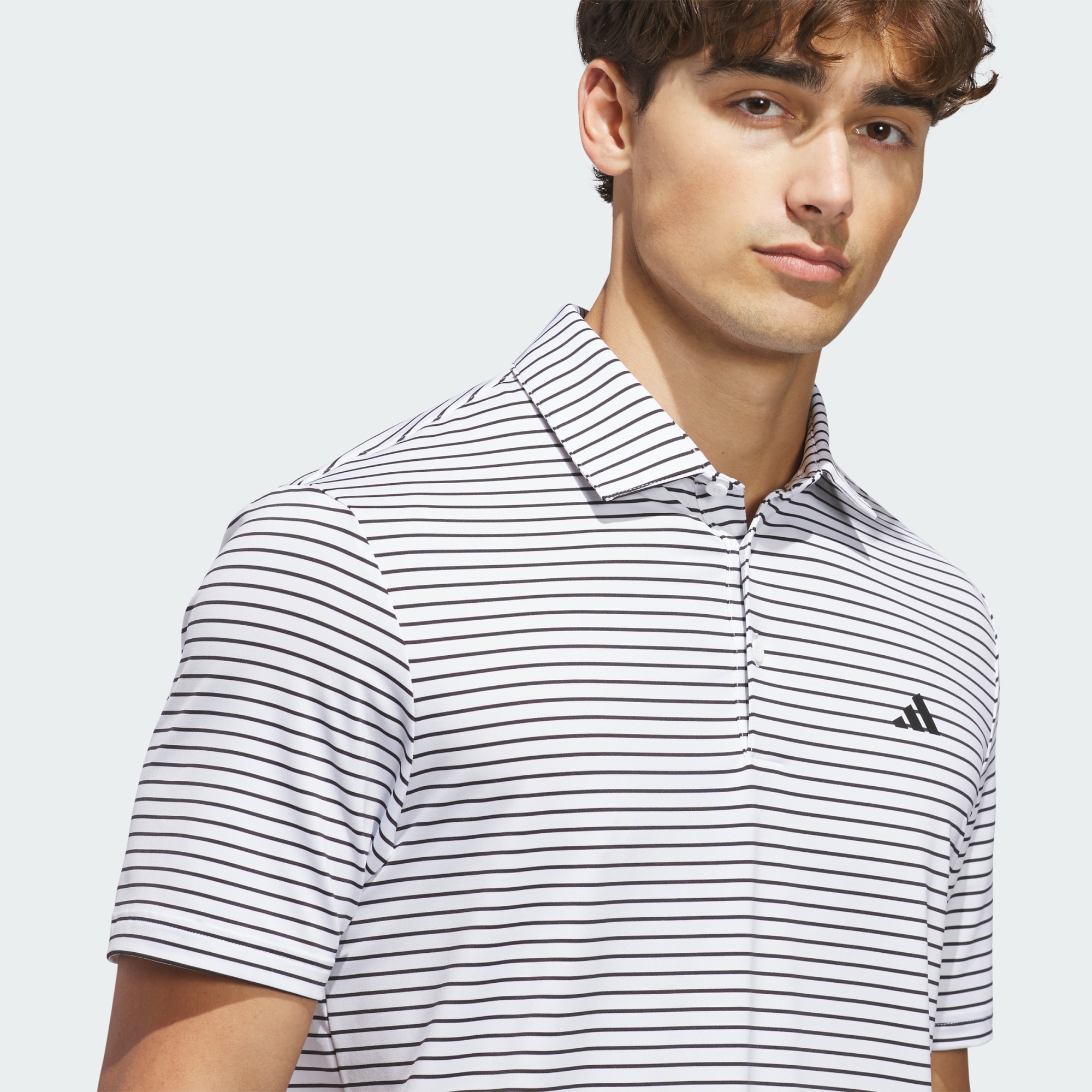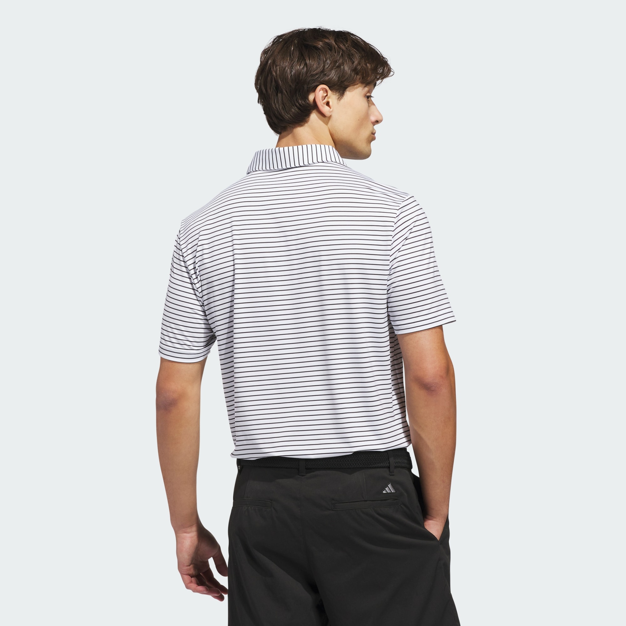 The Performance Two-Color Stripe Polo Shirt is your go-to for a day on the golf course. Crafted with precision, this polo shirt features a classic stripe design that adds a touch of elegance to your golf attire. Designed in a regular fit, it offers both comfort and style, allowing you to focus on your game with casual ease. The single-jersey construction provides a soft feel against your skin, making it a great choice for long hours on the course. adidas brings you a shirt that combines performance with aesthetic appeal, helping you feel confident and comfortable through your game. Whether you're teeing off or enjoying a post-game meal, this polo shirt is all about looking sharp and feeling great.