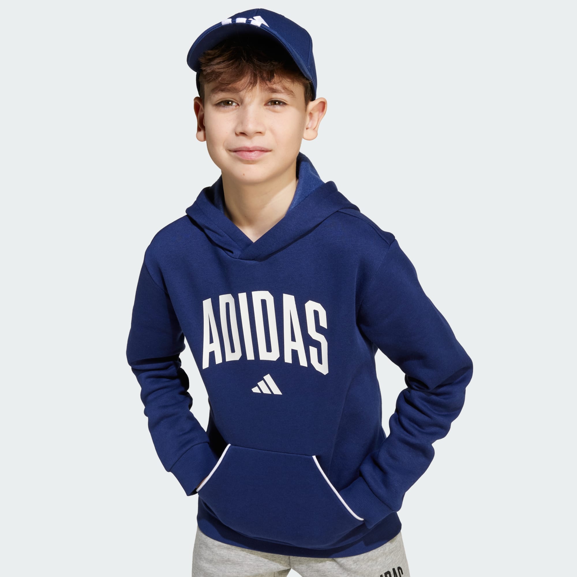 A casual essential with a collegiate twist, this juniors' adidas hoodie is perfect for teaming with jeans or sweats. Made from soft fleece, this pullover will keep you warm and comfortable wherever your day takes you. A kangaroo pocket provides a place to stash your essentials.