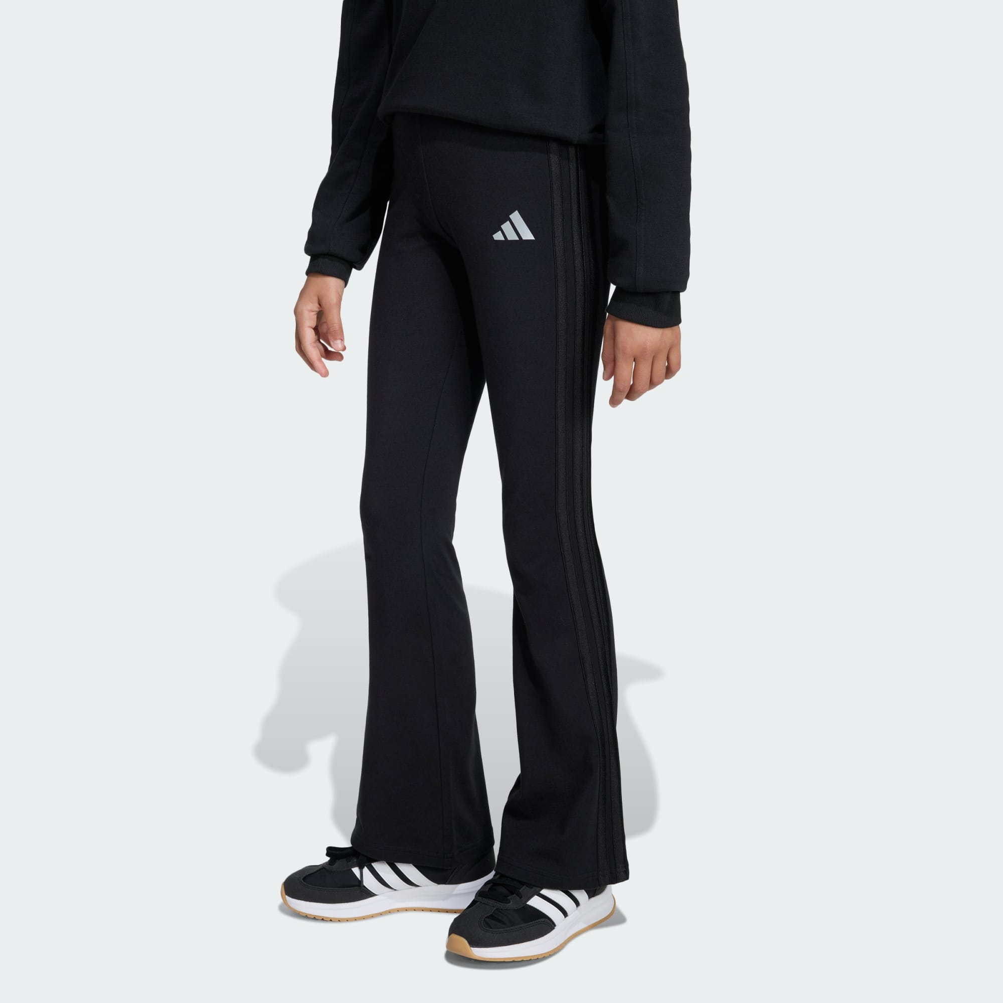 Vibrant style meets everyday comfort with the Seasonals Glam Flared Leggings. Designed to bring a pop of unique self expression to their wardrobe, these leggings are great for those who love to embrace playful style without compromising on comfort. Whether they’re enjoying a day out with friends or relaxing at home, these leggings are a glamourous addition to their everyday looks. The shiny details add a touch of elegance, for a bold look that’s great for mixing and matching with their favourite pieces. The knit fabric offers a soft touch for a comfortable feel on active or relaxed days, while the elasticated high waistband provides a snug and supported feel so they can run and play with confidence. The flared design adds a classic and timeless look, while the tight fit offers a streamlined silhouette so they can embrace dynamic days without distraction. Let them embrace style without compromising on iconic adidas quality, and make these leggings a go-to part of their everyday outfits.