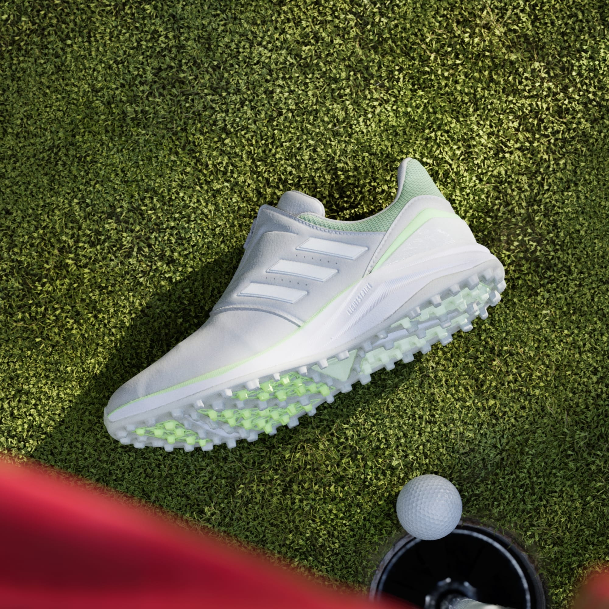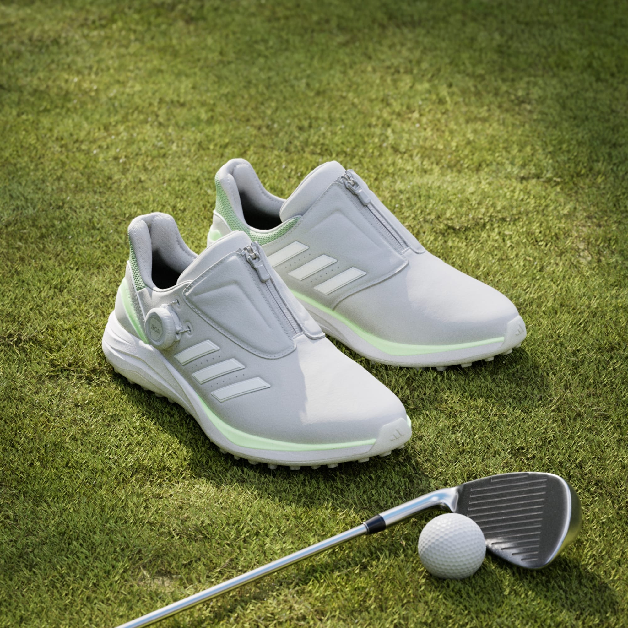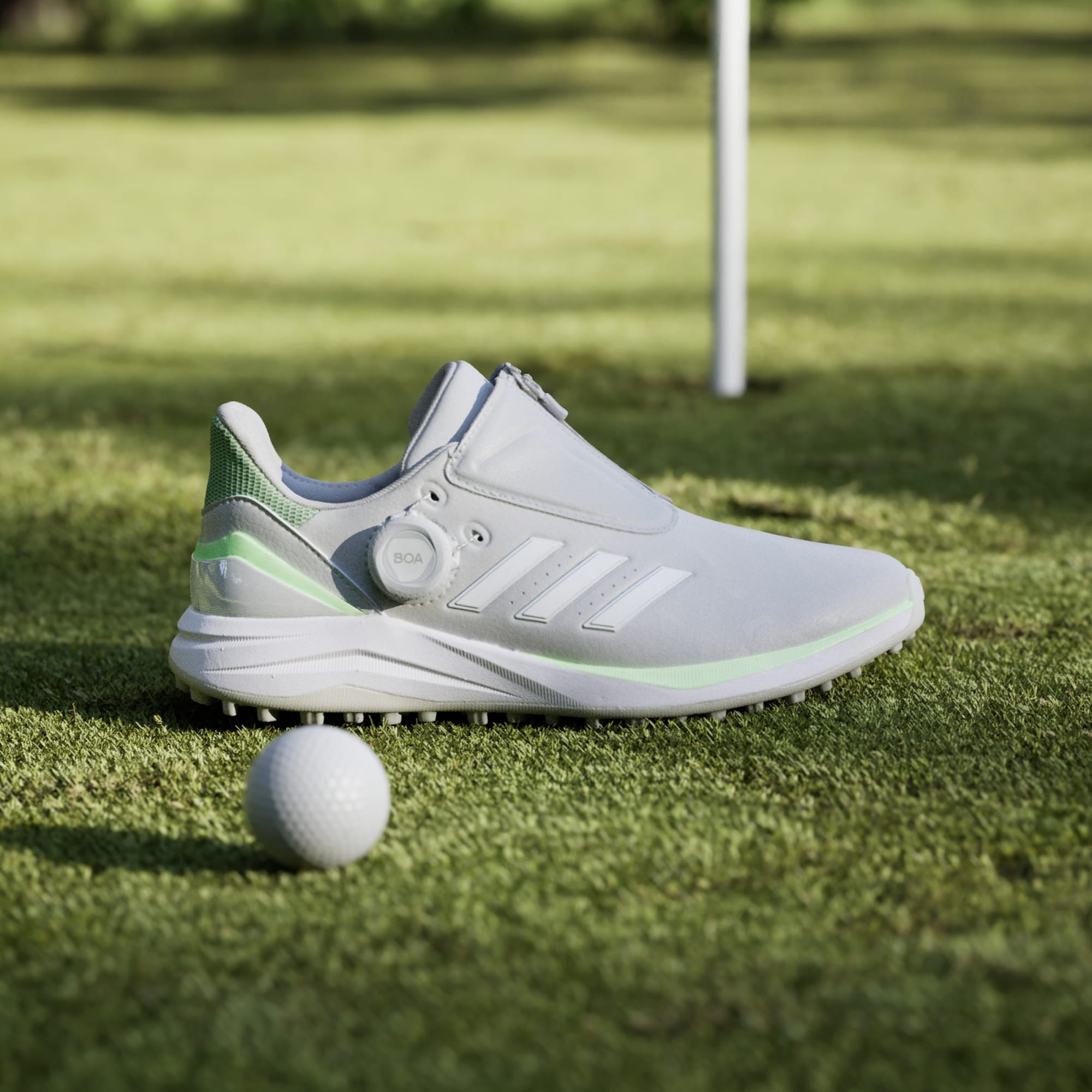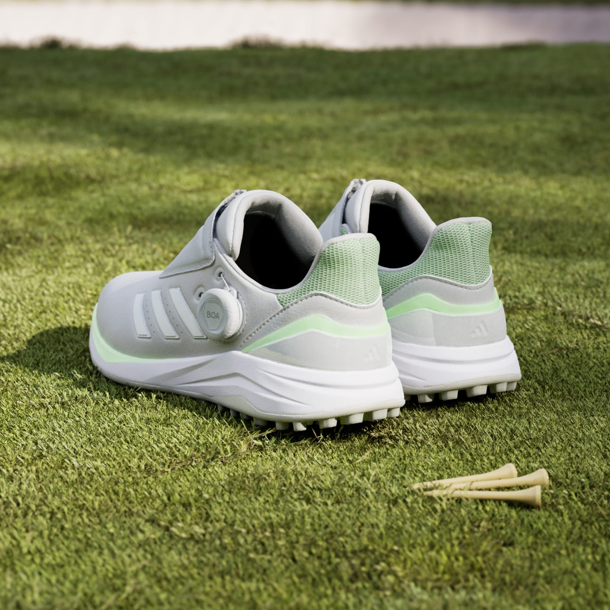 Dial in comfort from the very first wear in these adidas Solarmotion spikeless golf shoes. They feature a quick, easy BOA® Fit System that lets you achieve a custom fit with one hand. Lightweight foam cushioning provides comfort and responsive support with every step, while the rugged Adiwear Grid outsole provides excellent traction over varied terrain and anchors you to the turf. The moulded foam collar locks in comfort around your ankle, while the waterproof upper fends off moisture from wet grass. By choosing recycled, we are able to reuse materials that have already been created, which helps to reduce waste. Renewable materials choices will help us to remove our reliance on finite resources. Our products made with a blend of recycled and renewable materials feature at least 20% total of these materials.