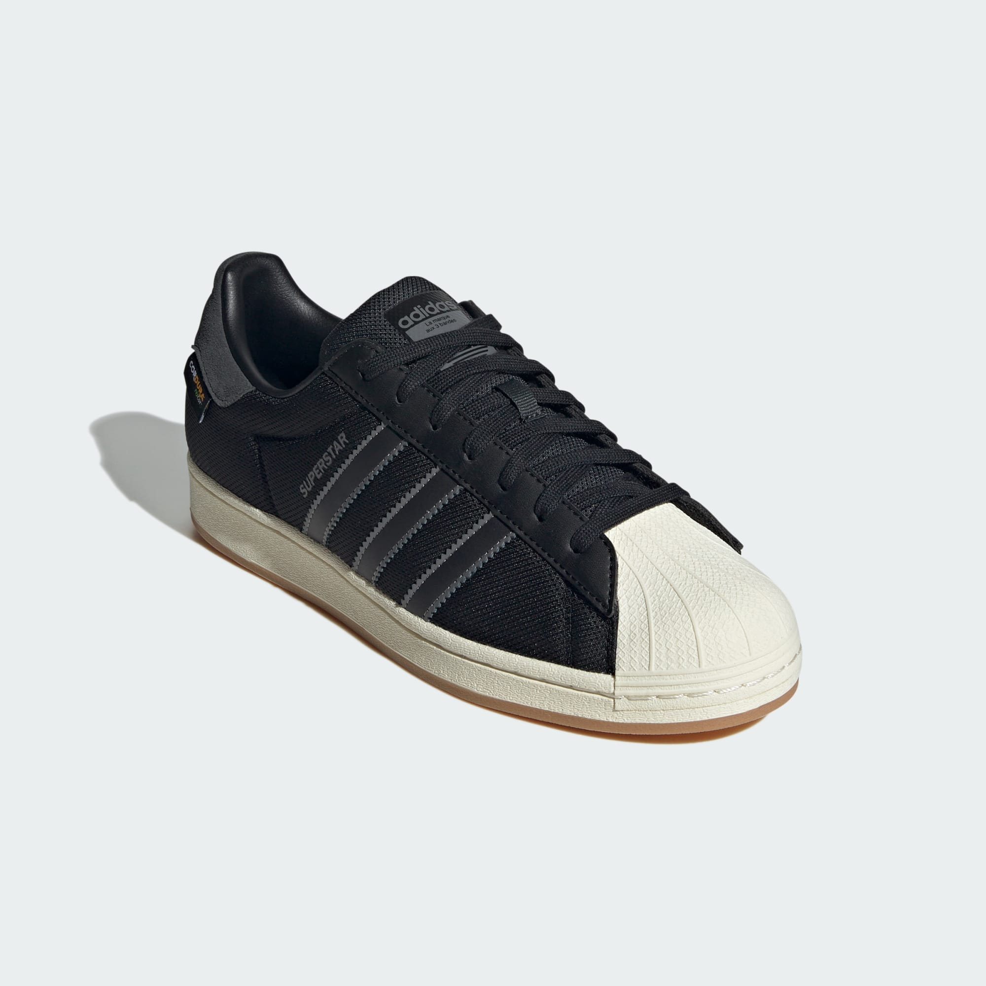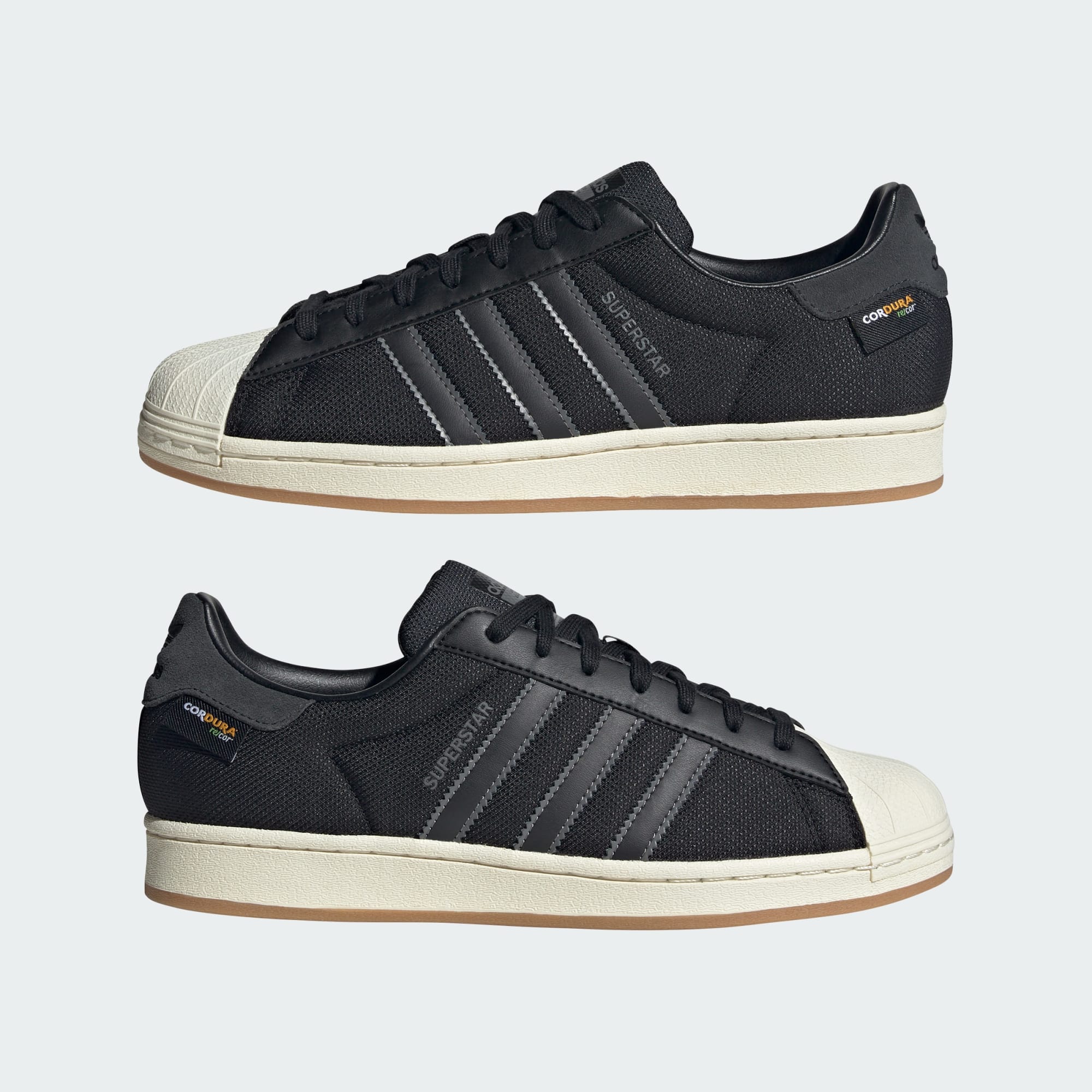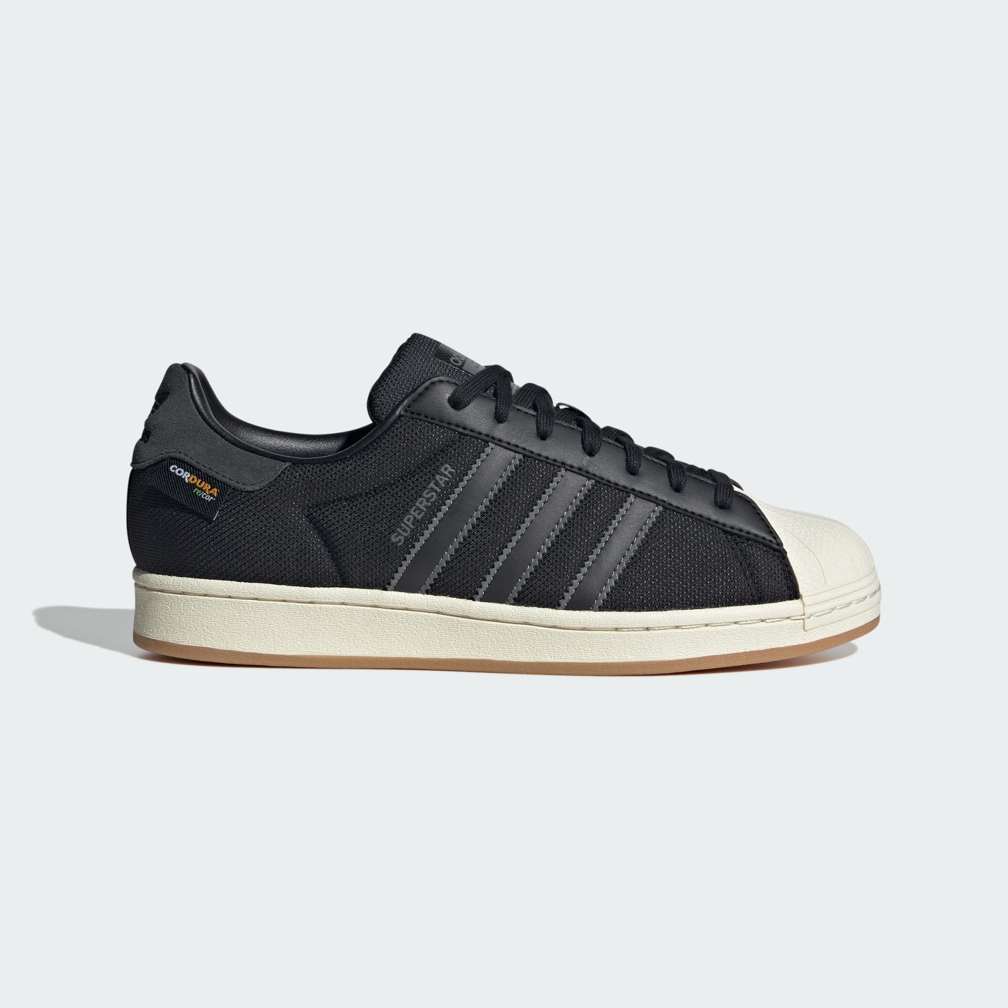 The adidas Superstar shoes have delivered timeless style for over fifty years. From the rubber shell toe to the serrated 3-Stripes, these shoes have remained an icon. This pair shakes up the classic look with a durable CORDURA® upper for an all-seasons energy. Earthy tones and the vintage gum sole bring home the aesthetic. Time to go out and kick up some autumn leaves.