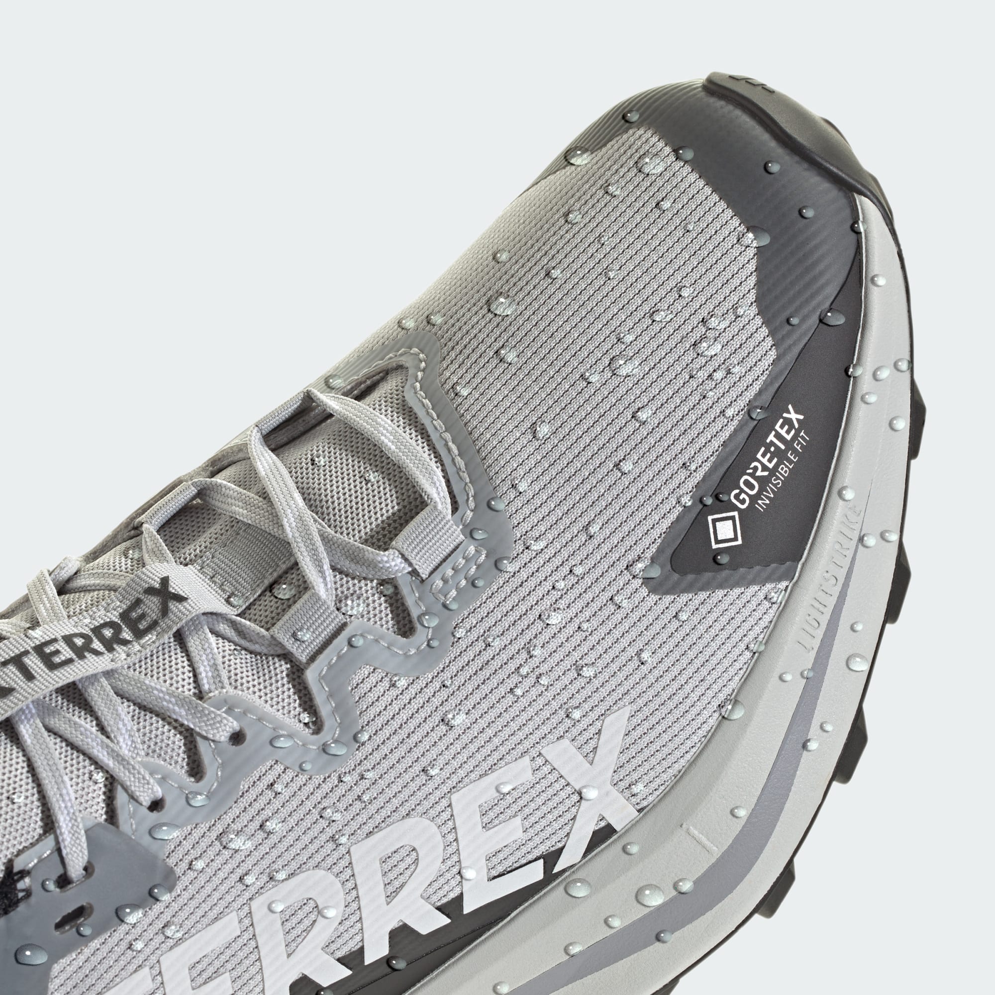 Responsive and supportive, these Terrex Agravic trail running shoes are built for logging miles and adventurous days on the trail in wet, muddy conditions. A waterproof, breathable GORE-TEX membrane seals out wet conditions to keep your feet dry, and you focused on the trail ahead. Abrasion-resistant overlays add trail-proven durability, and the gusseted tongue seals out debris. A Lightstrike 2.0 midsole provides responsive cushioning for stability and comfort on rough terrain, and the rocker shape promotes a smooth roll-off for a fluid pace. The Continental™ Rubber outsole with 4 mm lugged tread maintains secure footing across roots and rocks, wet or dry. This product features at least 20% recycled materials. By reusing materials that have already been created, we help to reduce waste and our reliance on finite resources and reduce the footprint of the products we make.