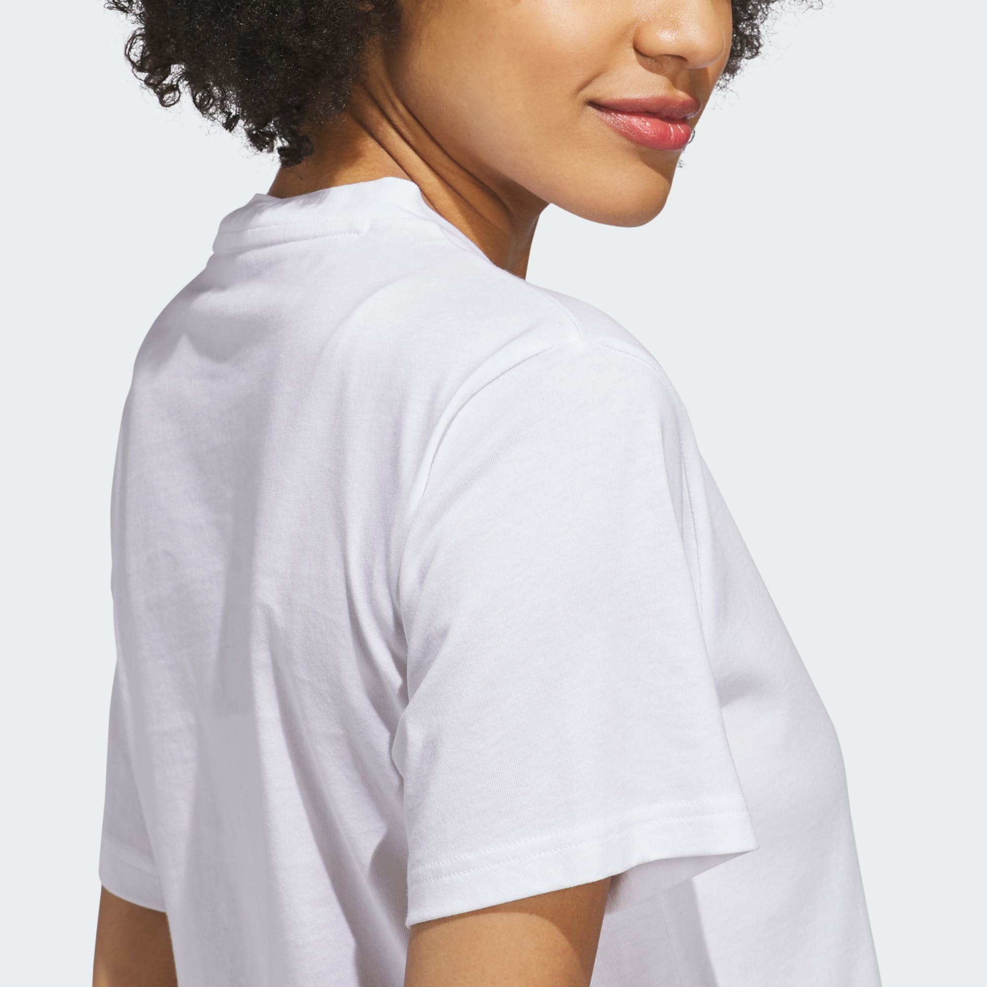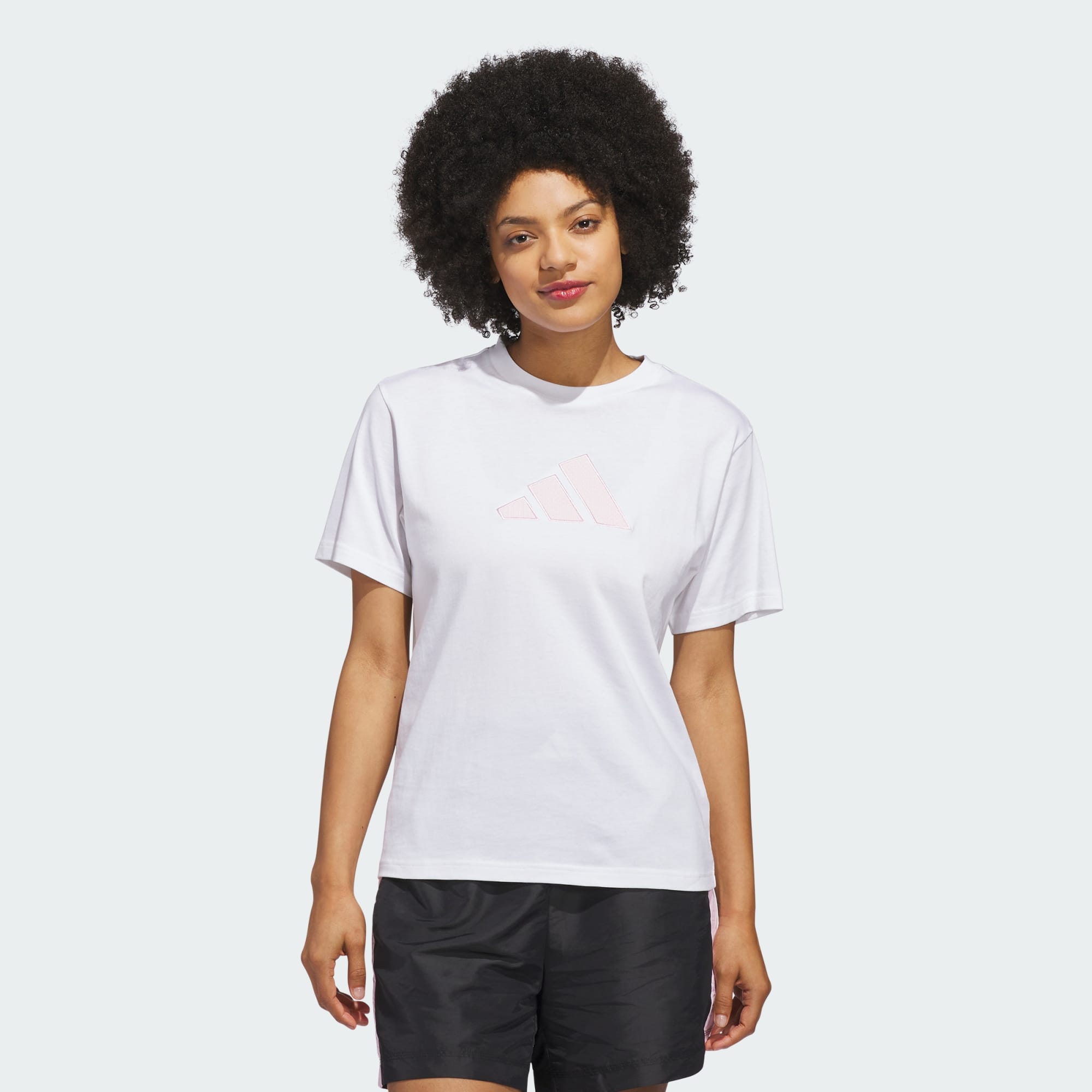 Embrace the essence of womanhood with the Textured Gingham Big Logo Graphic T-Shirt. This piece blends bold design with everyday wearability, making it a standout piece in your wardrobe. Crafted from single jersey cotton, it offers a soft touch against the skin, making it perfect for everyday wear. The regular fit provides a relaxed silhouette that moves with you, while the ribbed collar adds a timeless detail. The oversized adidas logo creates a confident statement that balances sport and style. This classic piece of adidas sportswear is designed for those who appreciate both style and comfort. Wear it as an expression of your individuality and let your personality shine through.