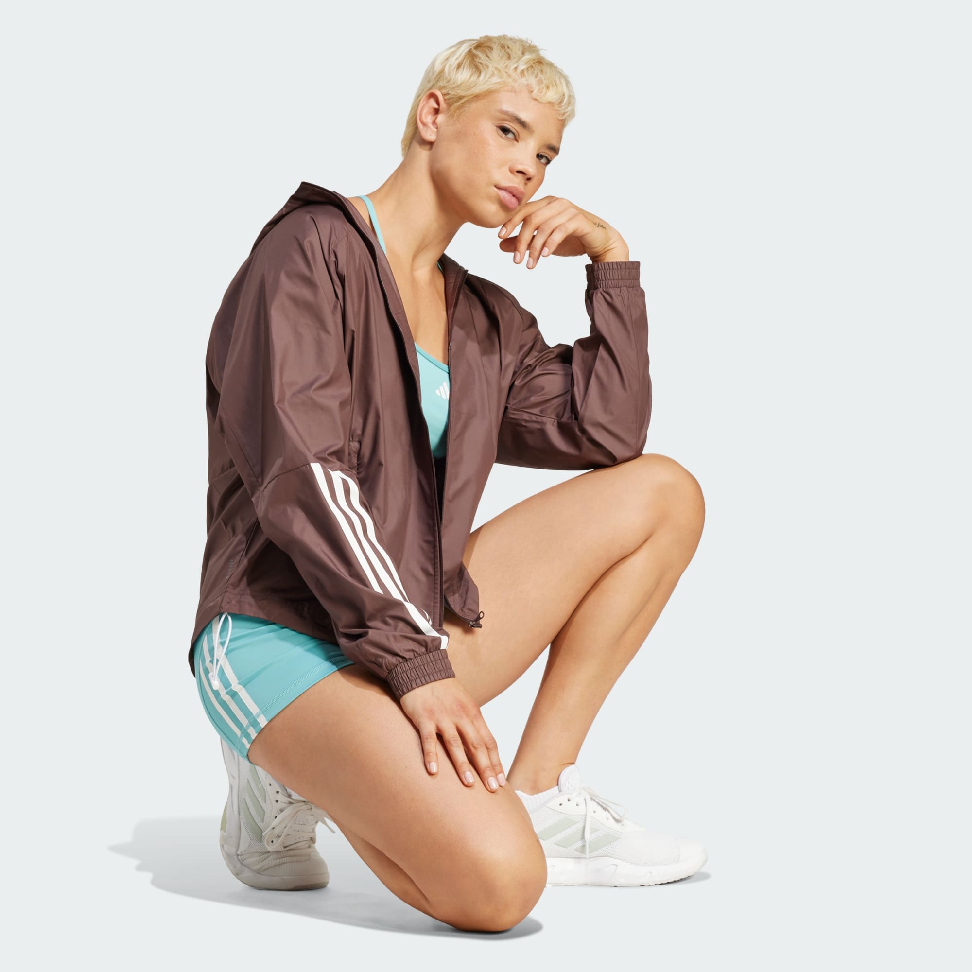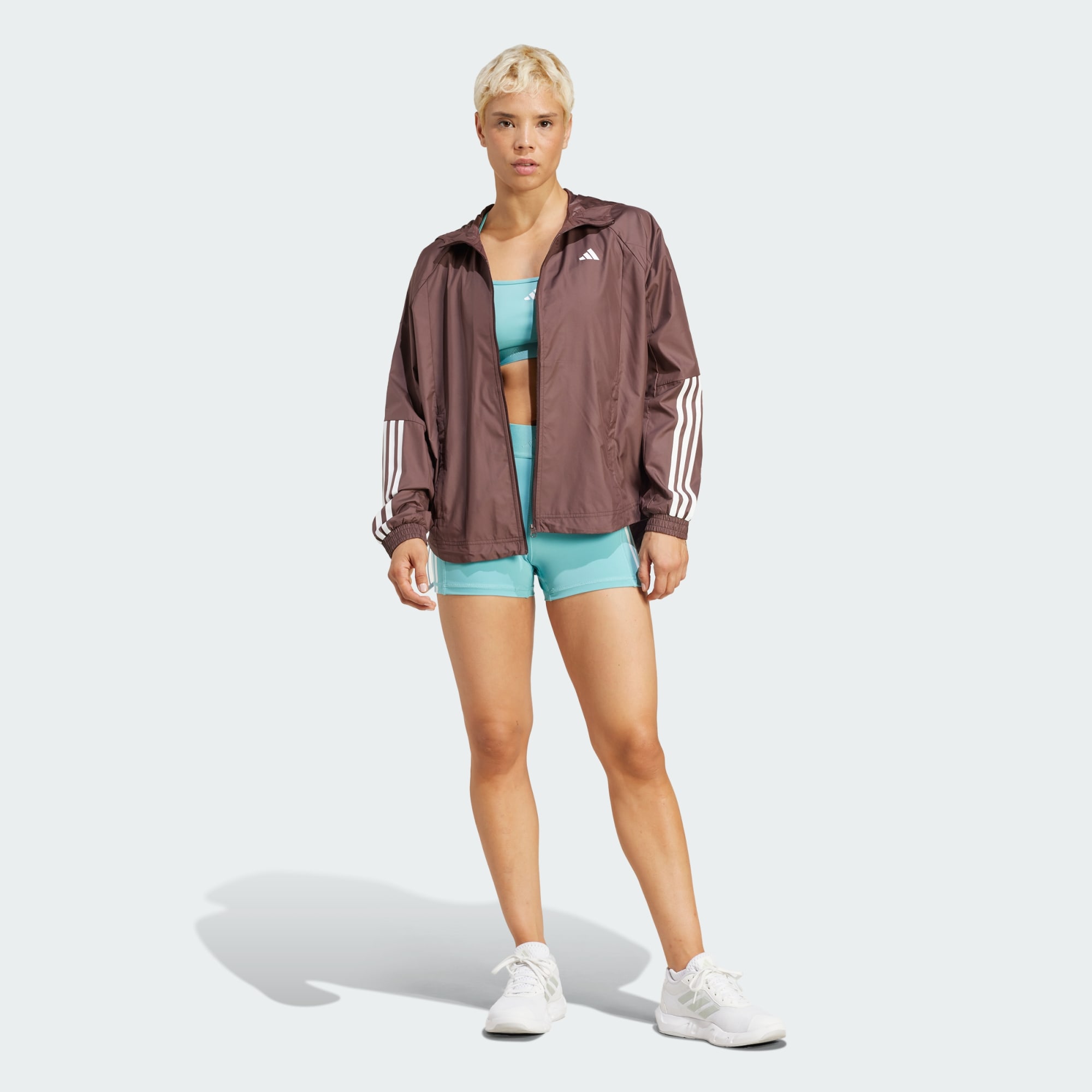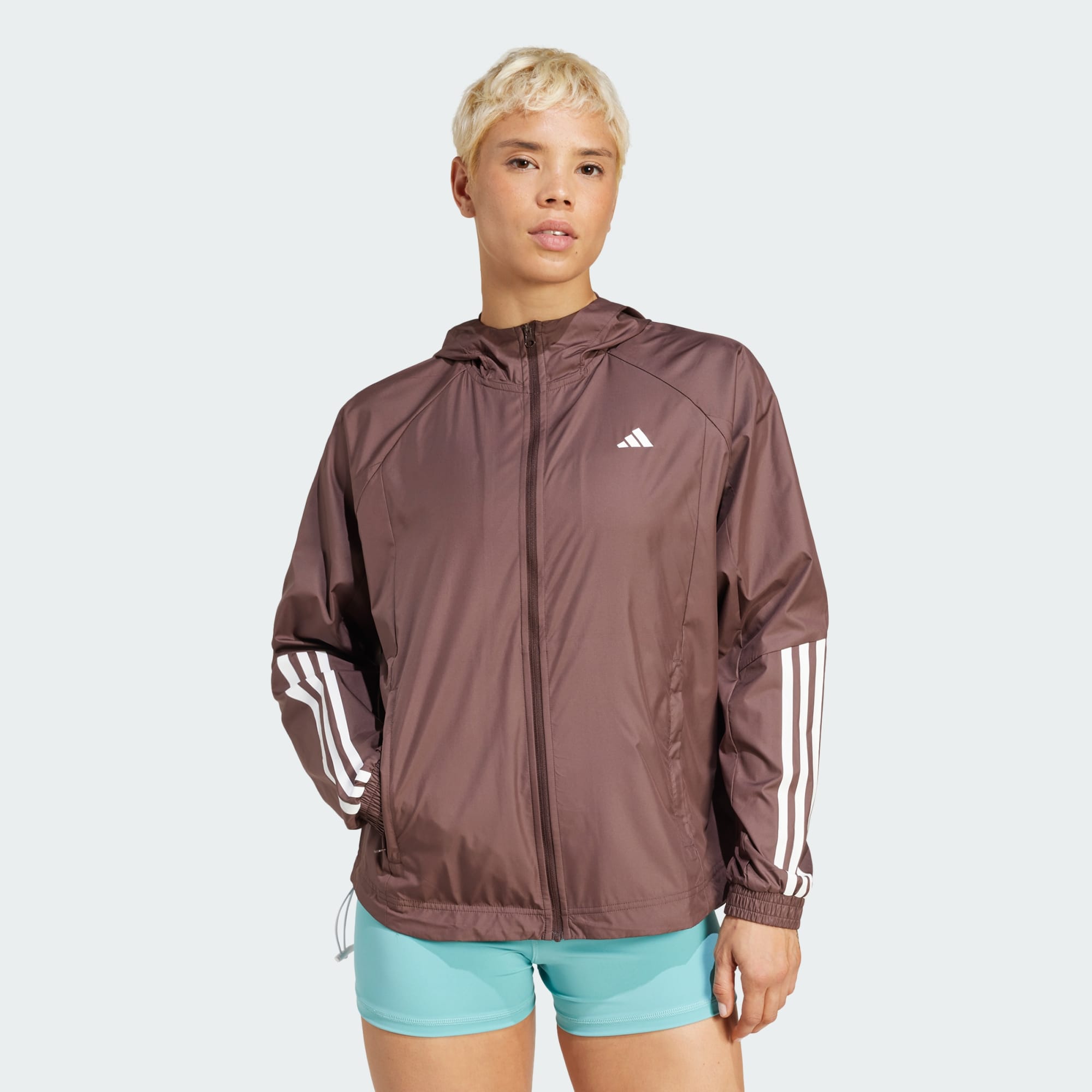 Head to the gym or dance class in this adidas windbreaker that lets you take on wind and light rain without missing a beat. Loose-fitting and sporty, it features mesh panels for breathable comfort. Batwing sleeves and a curved, drawcord-adjustable hem add stylish appeal. This product is made with at least 70% recycled materials. By reusing materials that have already been created, we help to reduce waste and our reliance on finite resources and reduce the footprint of the products we make.