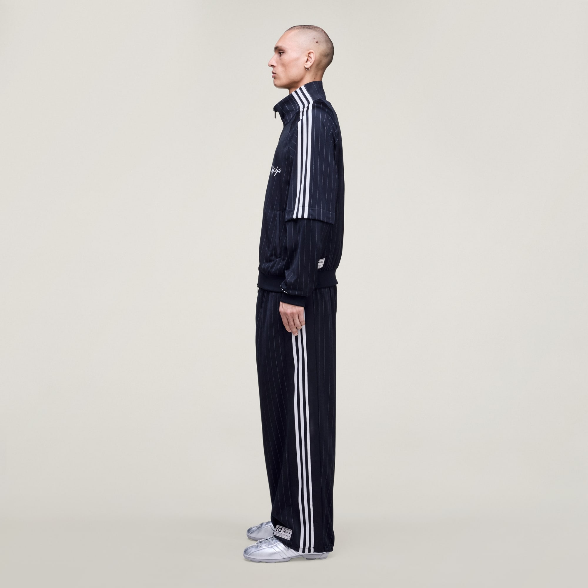 Introducing the Y-3 Basketball Track Top, where luxury fashion meets sports innovation. Crafted from the classic tracksuit material by adidas, this track top is designed with a progressive edge, making it a standout piece in your wardrobe. The integrated pinstripes pay homage to basketball inspiration, seamlessly tying sportswear with a tailoring approach. The horizontal zippers and snap button closures on the sleeves offer an adaptable fit, allowing you to transform long sleeves into half-length ones effortlessly. The bold Yohji Yamamoto signature across the left chest and the contrast Y-3 logo satin heat transfer above the left cuff add a touch of avant-garde design. With a high closed neckline and angular welt pockets, this track top combines practicality with style. The two-way zip closure along the centre front offers ease of wear, completing the look.